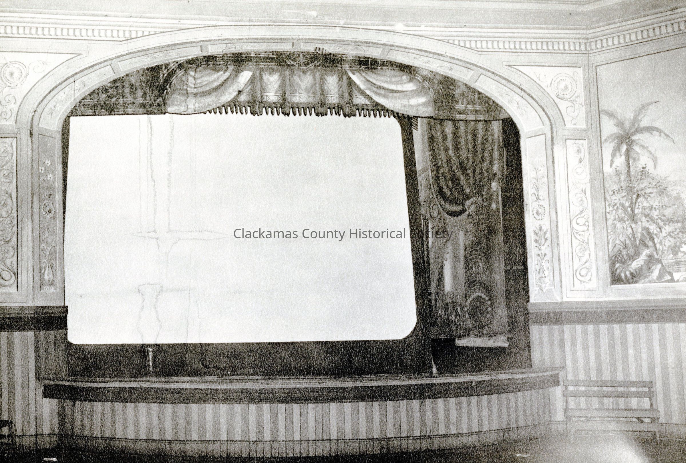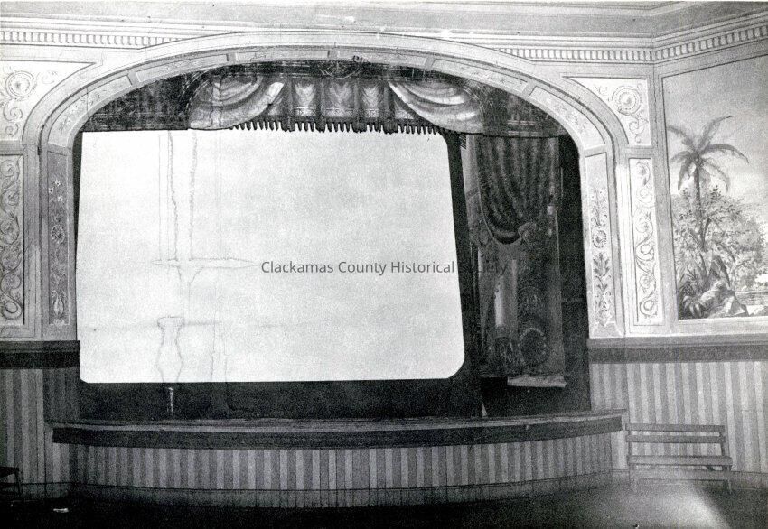Shively Theater. Stage with movie screen. Oregon City. 1954.Made/Created