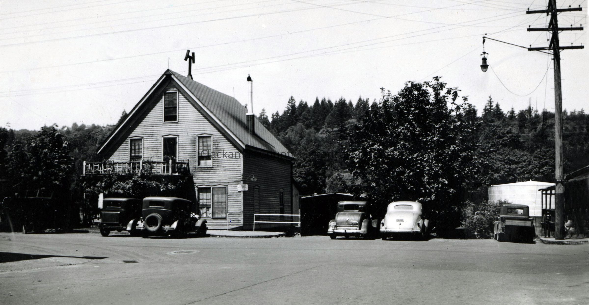 Southwest Corner of 5th and Water, Oregon City. Looking West on back of photo. Cars in photo.Made/Created
