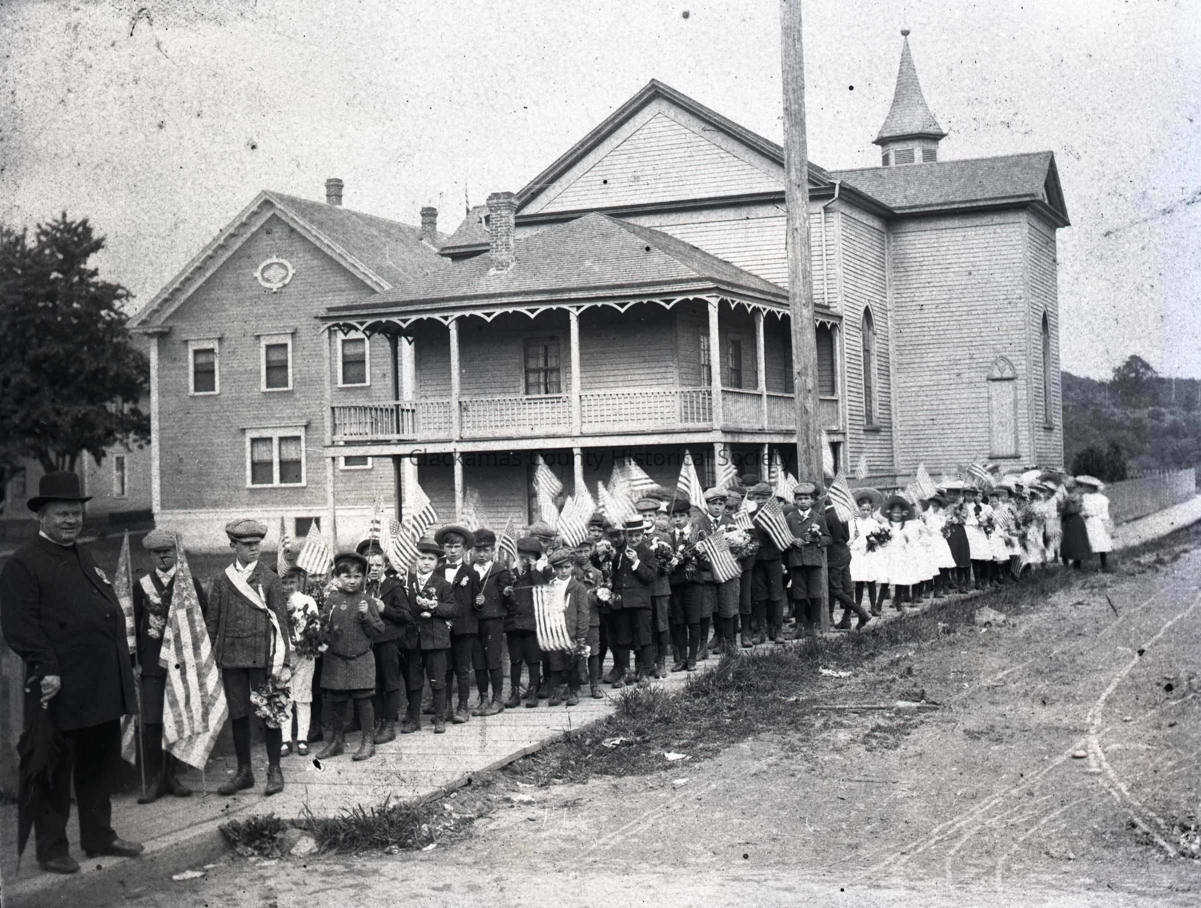 St. Johns School, 10th and Main, Oregon City. (A note on the back of a photo hardcopy states the date as 30 May 1895.)Made/Created