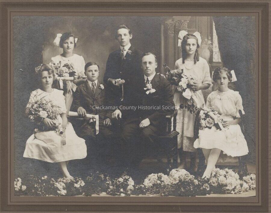 Framed picture of Stafford Grade School - 8th Grade. Leta Tiedeman, Ed Woodworth, Lena Ellison, Phyllis TiedemanOther Names and Numbers