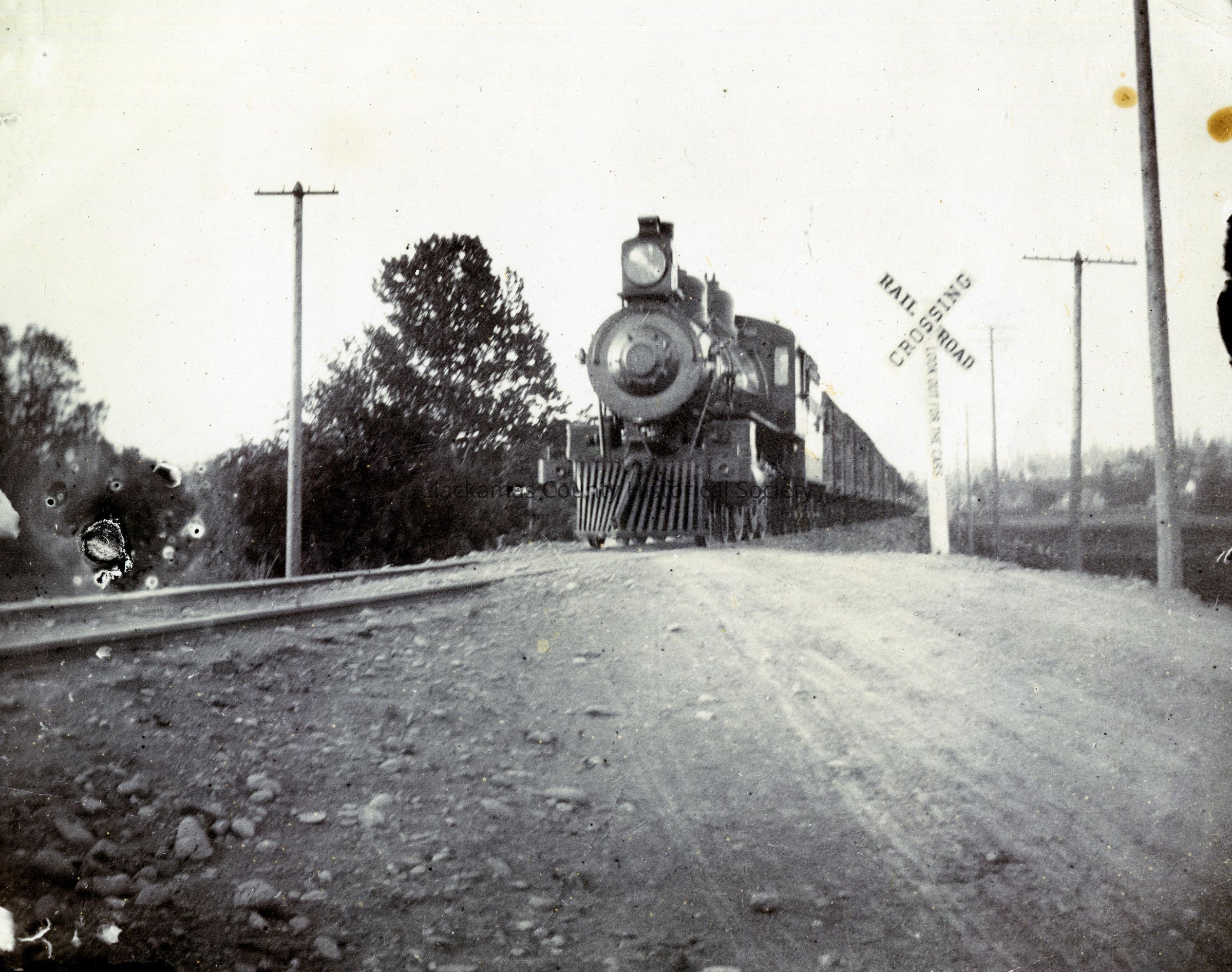 Southern Pacific Locomotive Grade Crossing 82nd street between Park Place and Oregon City 1900 Gift of Oscar Foutsge
