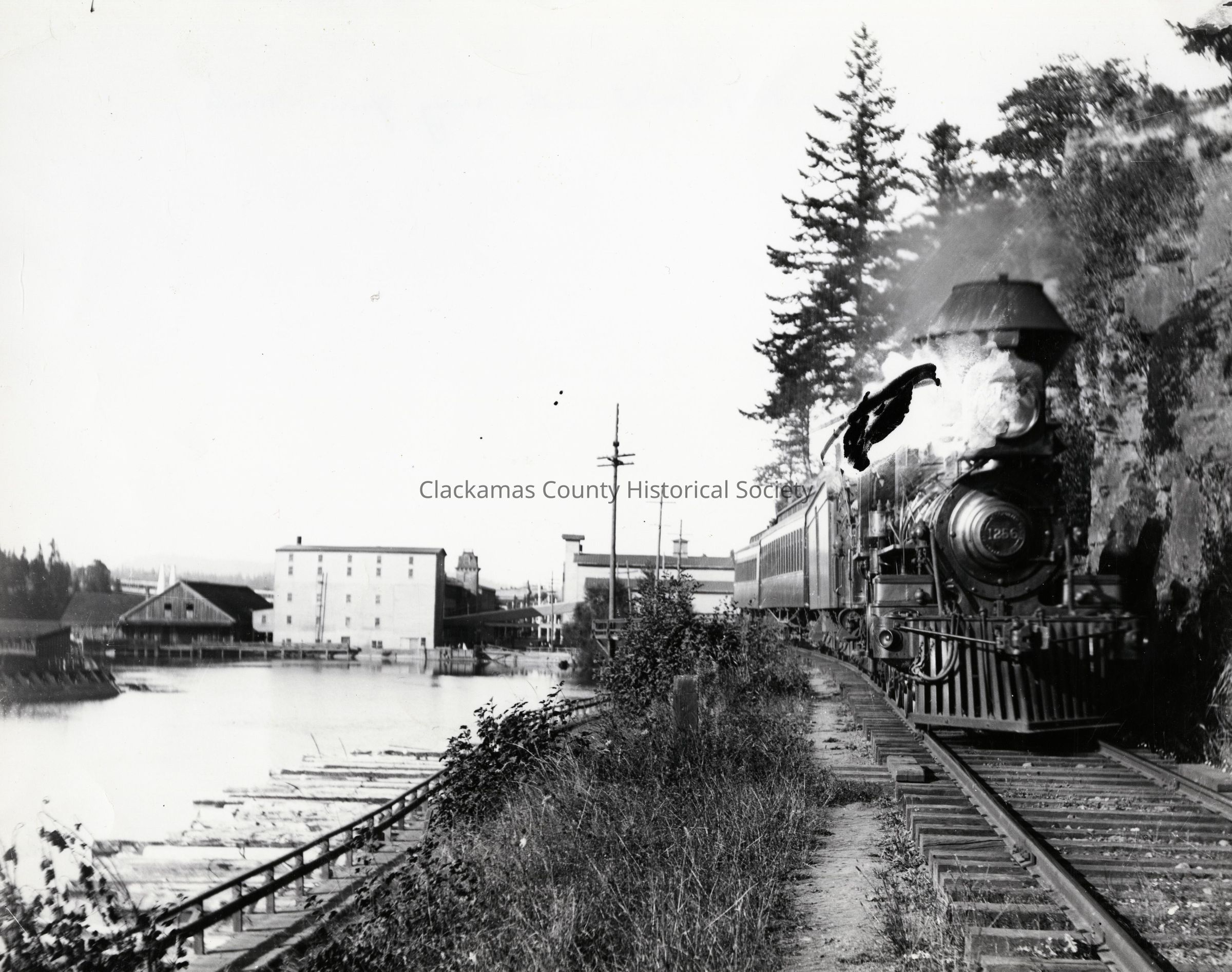 Train leaving Oregon City headed south Oregon City Clackamas County Engine # 1266 1890,s Steam Engine
