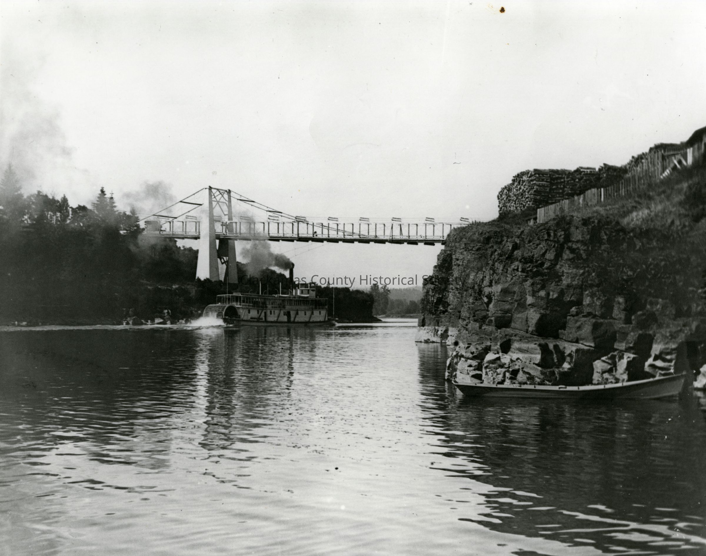 Steamboat Steams Boat Altona 1889 Oregon City Oregon City Bridge Small Boat Large amount of stacked wood on West Linn Side of River
