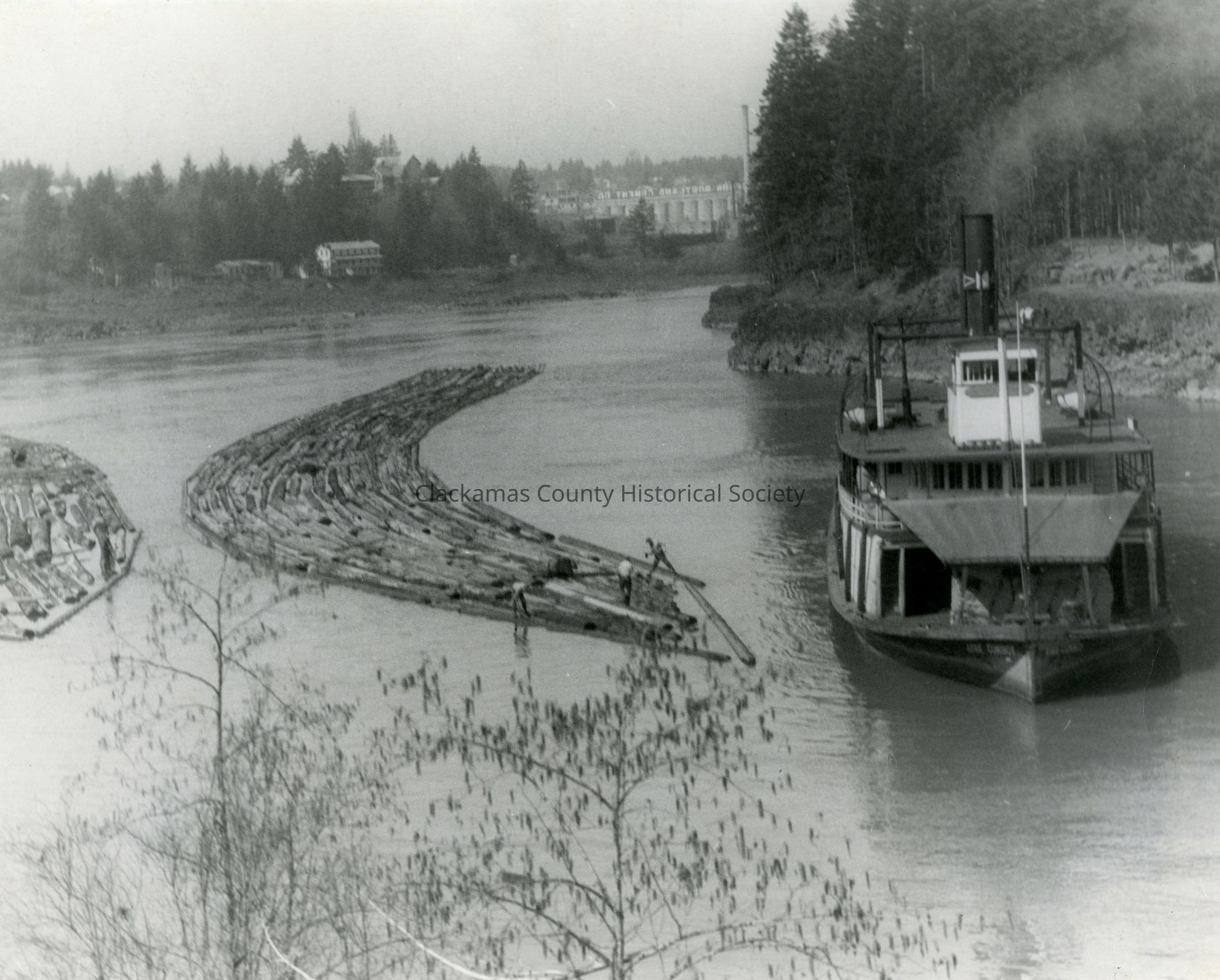 Steamboat "Annie Commings" 1923 - With Log Raft - Lake Oswego Iron MillEntry/Object ID