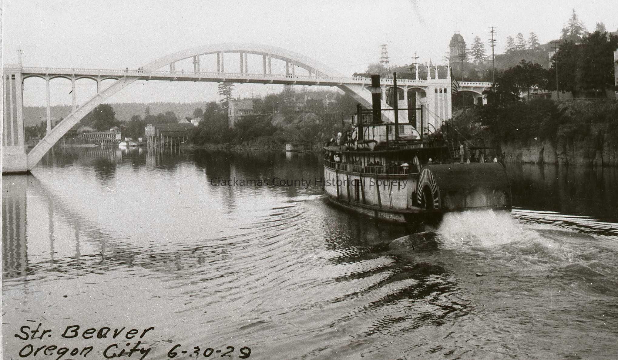 Steamer "Beaver" at Oregon City Arch Bridge, 30 Jun 1929.