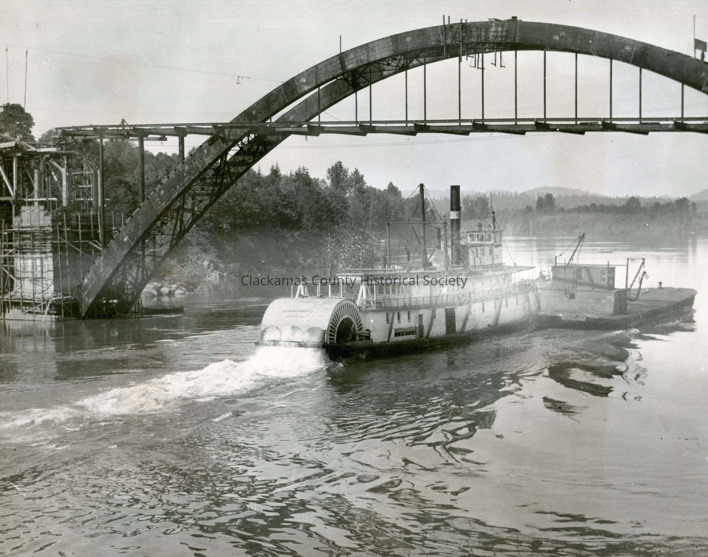 Steamboat "Diamond O" on Willamette River at Oregon City 1922 - Arch Bridge under ConstructionEntry/Object ID