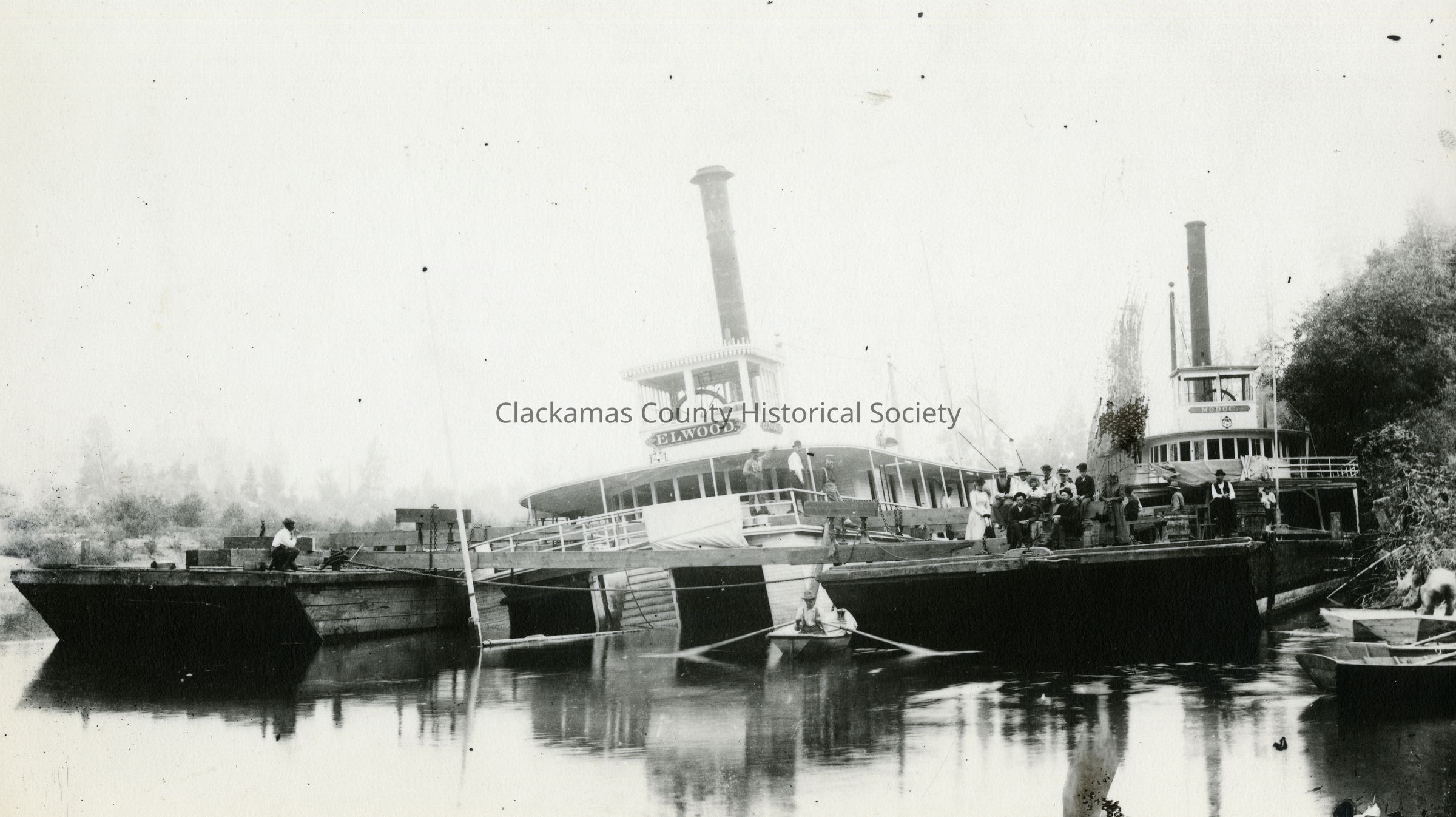 Steam Boat "Elwood" Steam Boat Modock standing By assistiing upper end Willamette Falls Locks Barges
