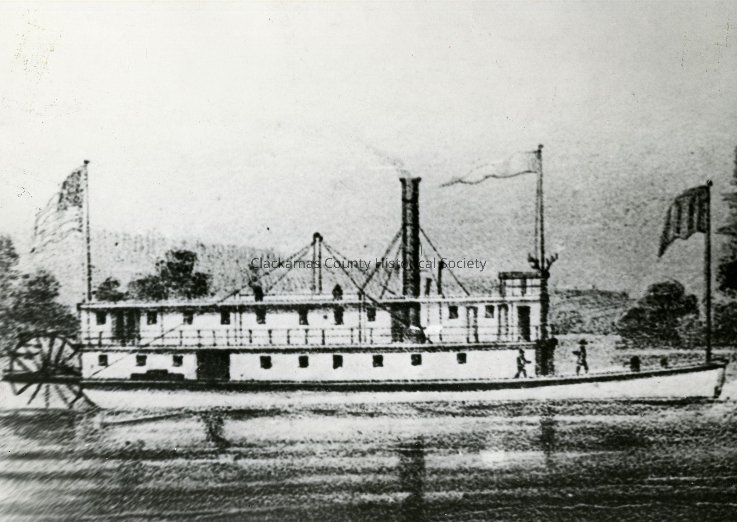 The Steamboat "Jennie Clark" on the Willamette River, Oregon in 1855. Gift of W.H. Howell, Oregon City