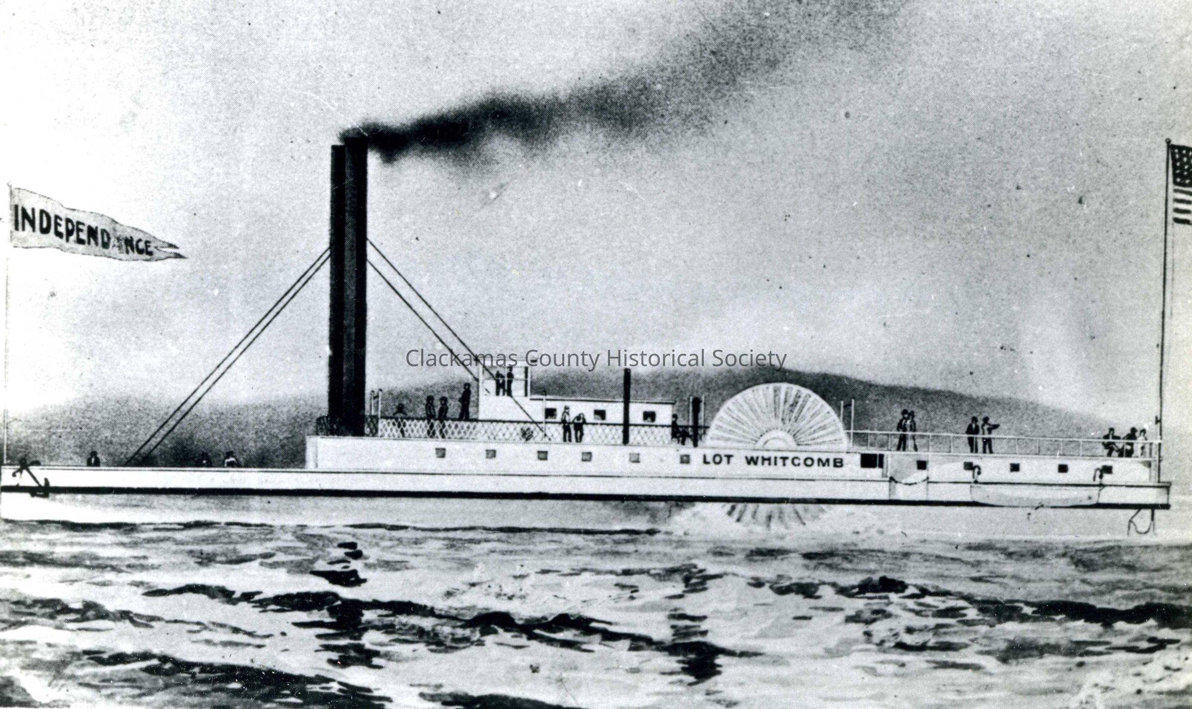 Drawing of Sidewheeler "Lot Whitcomb", first built in Milwaukie, Oregon, 1850.