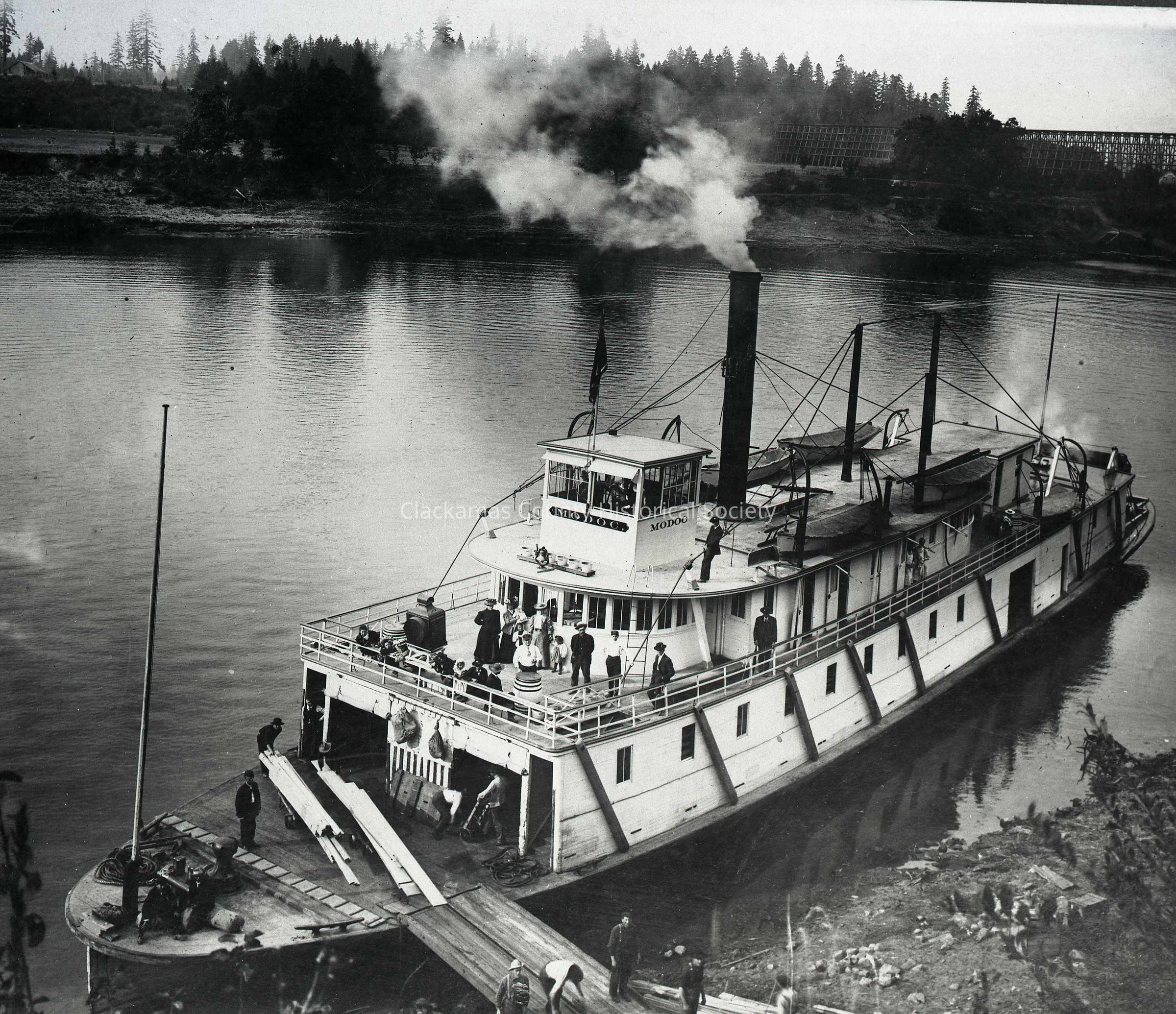 Steamboat "Modoc" 1907 - Wilsonville Landing, Oregon - Railroad Bridge in BackgroundEntry/Object ID
