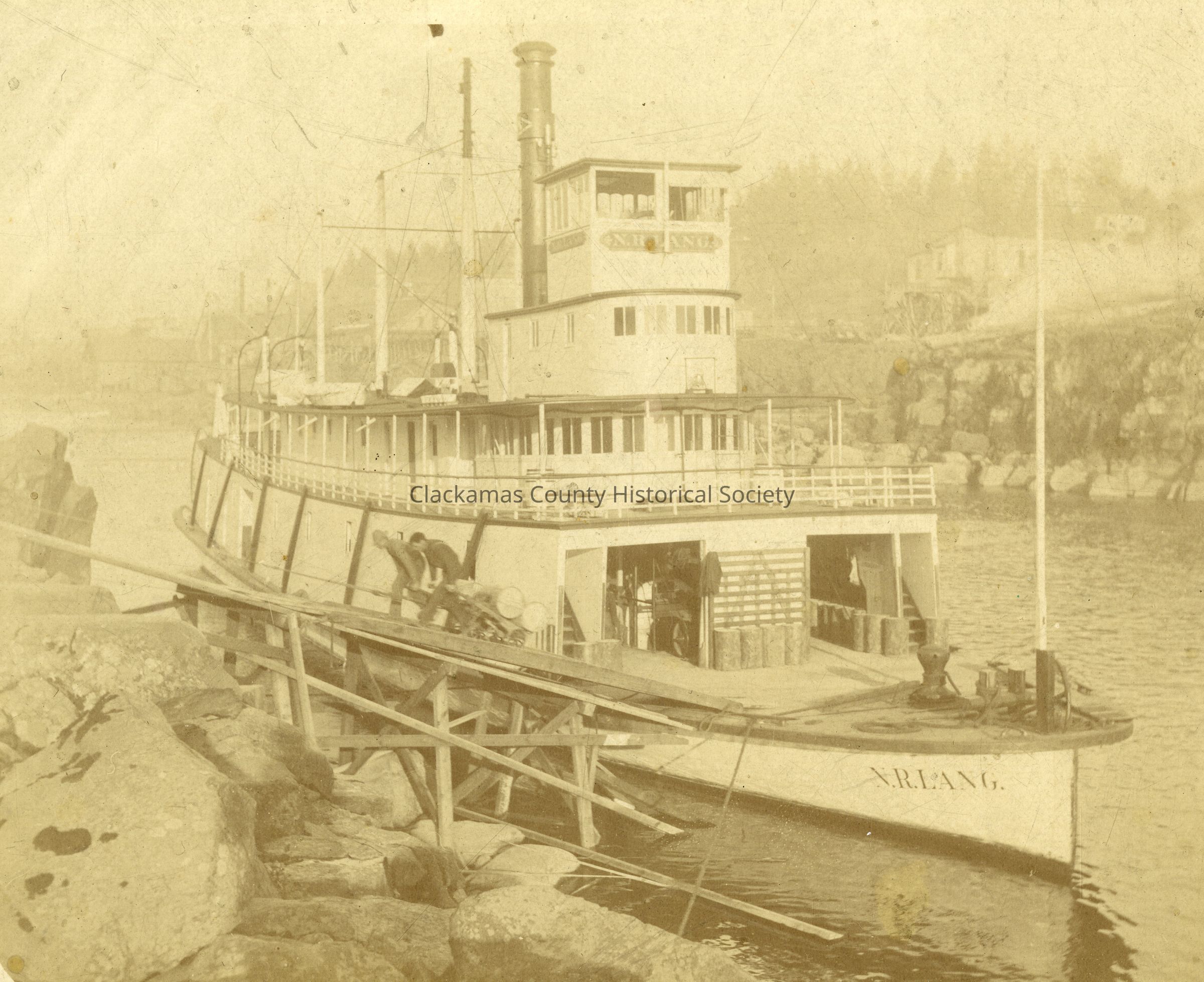 Steamboat "N. R. Lang" - 1907-1910? - Unloading at Crown Willamette Mill - OregonEntry/Object ID