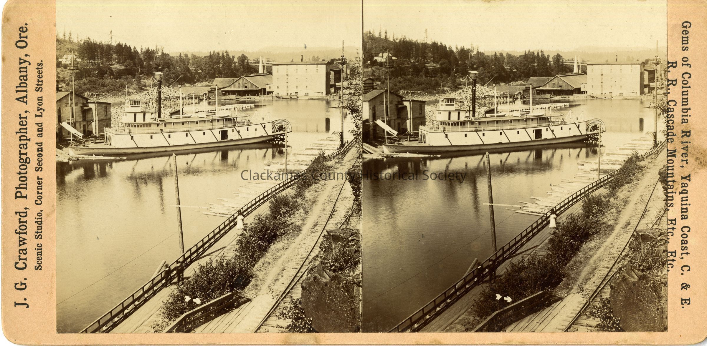 Steamboat "N.R. Lang" - 1902 - in Oregon City Boat Basin - Stereoscopic CardEntry/Object ID