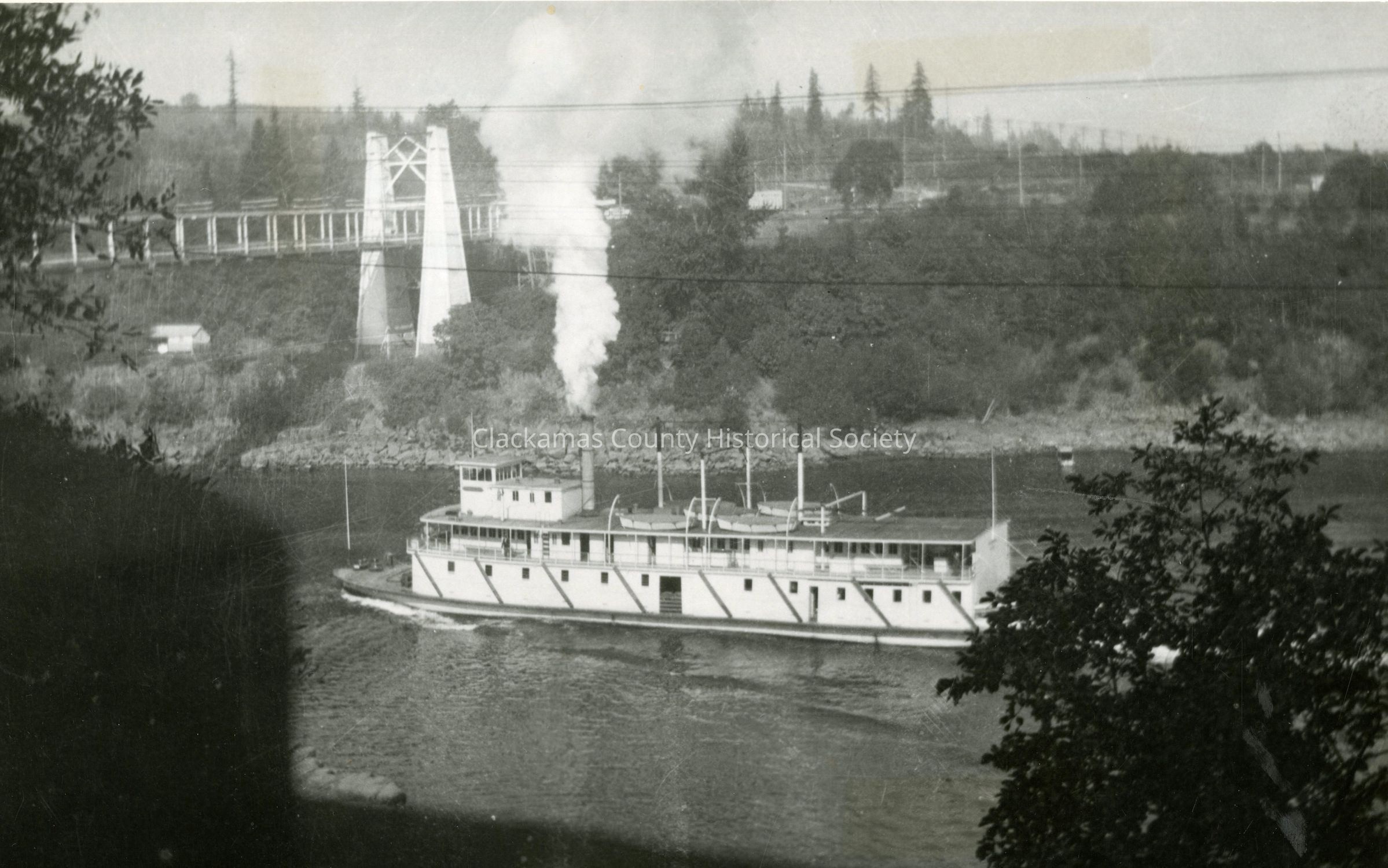 Steamboat on the Willamette River at Oregon City 1912 - Suspension Bridge.Entry/Object ID