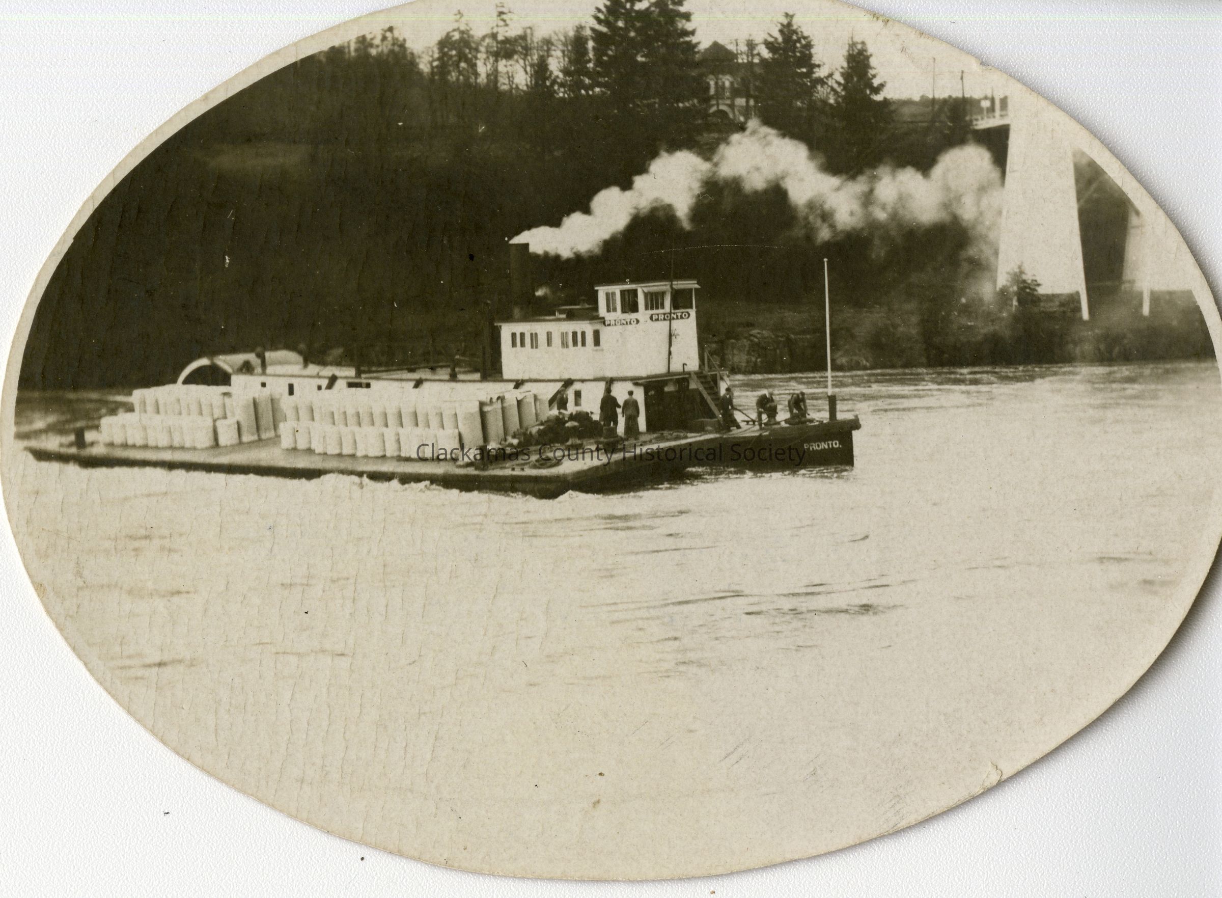 Photograph of the Steamship "Pronto" with Barge of Paper at Oregon City Oregon Bridge - 1915