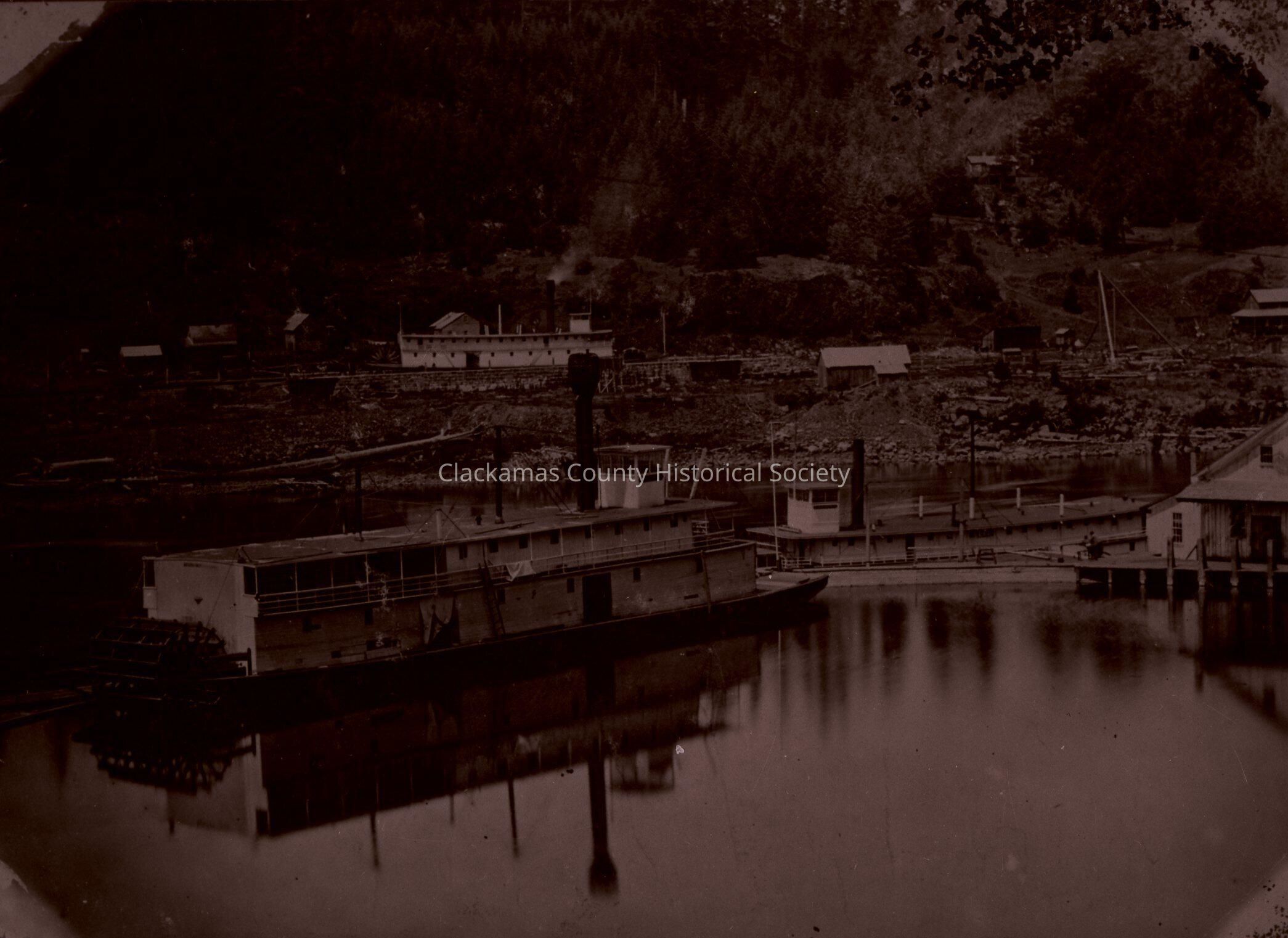 Oregon City Boats: "Success" in basin; "E.N. Cooke" in lower basin; "Governor Grover" in locks.