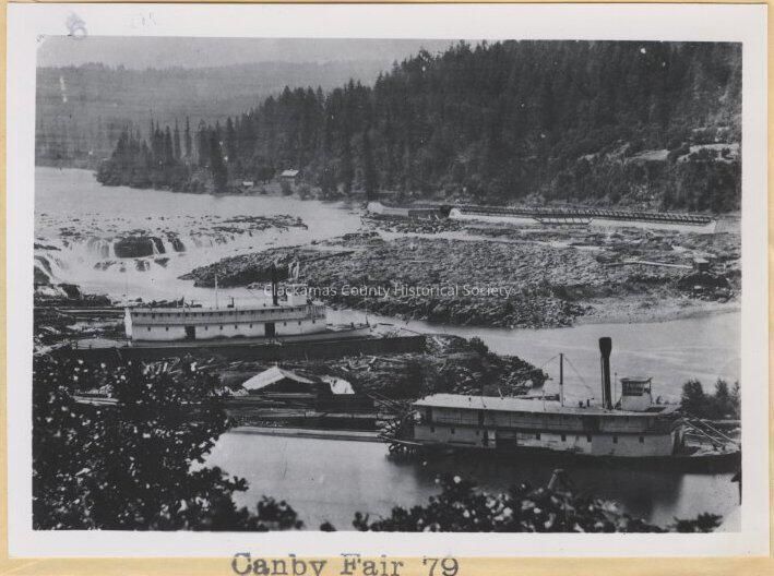 Oregon City Steam boats in basin and docks Gift of Carl Moline