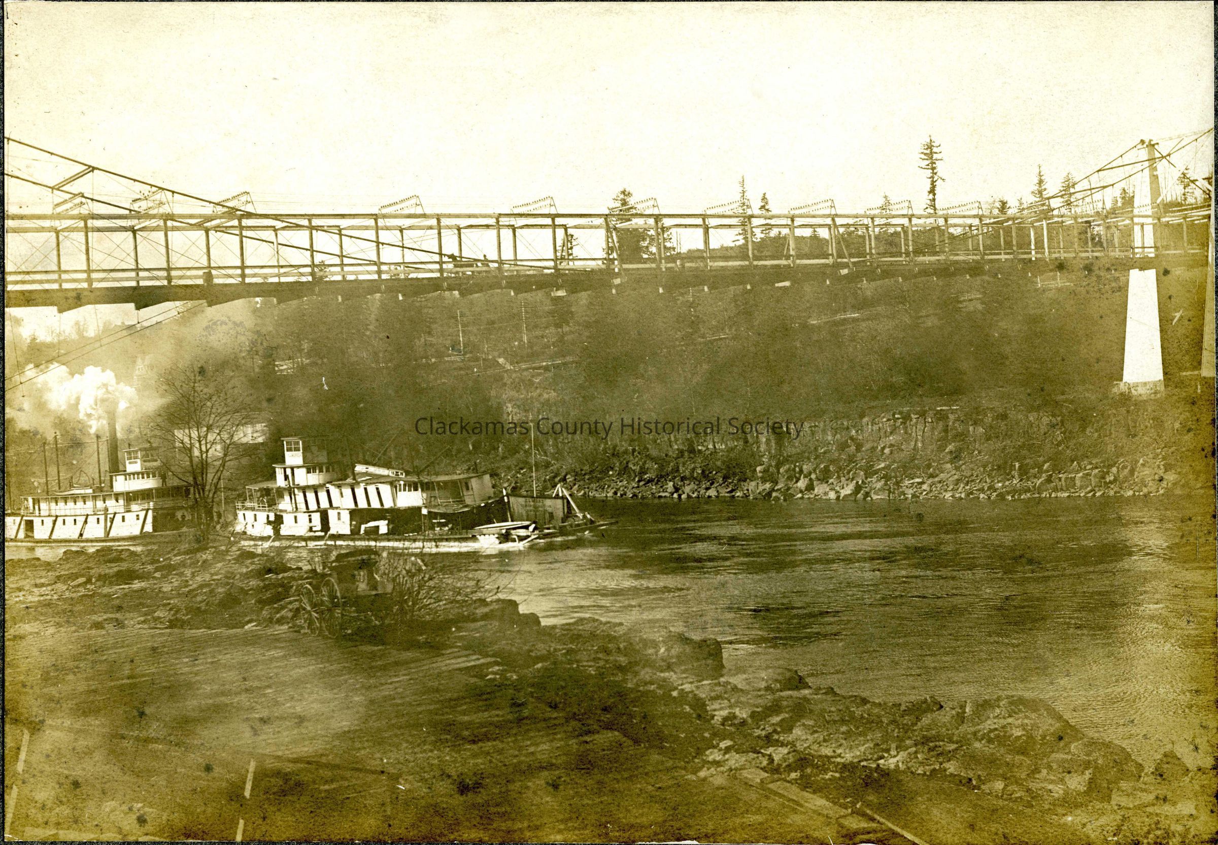 Steamboats Passing Beneath Suspension Bridge at Oregon City-West Linn.Entry/Object ID