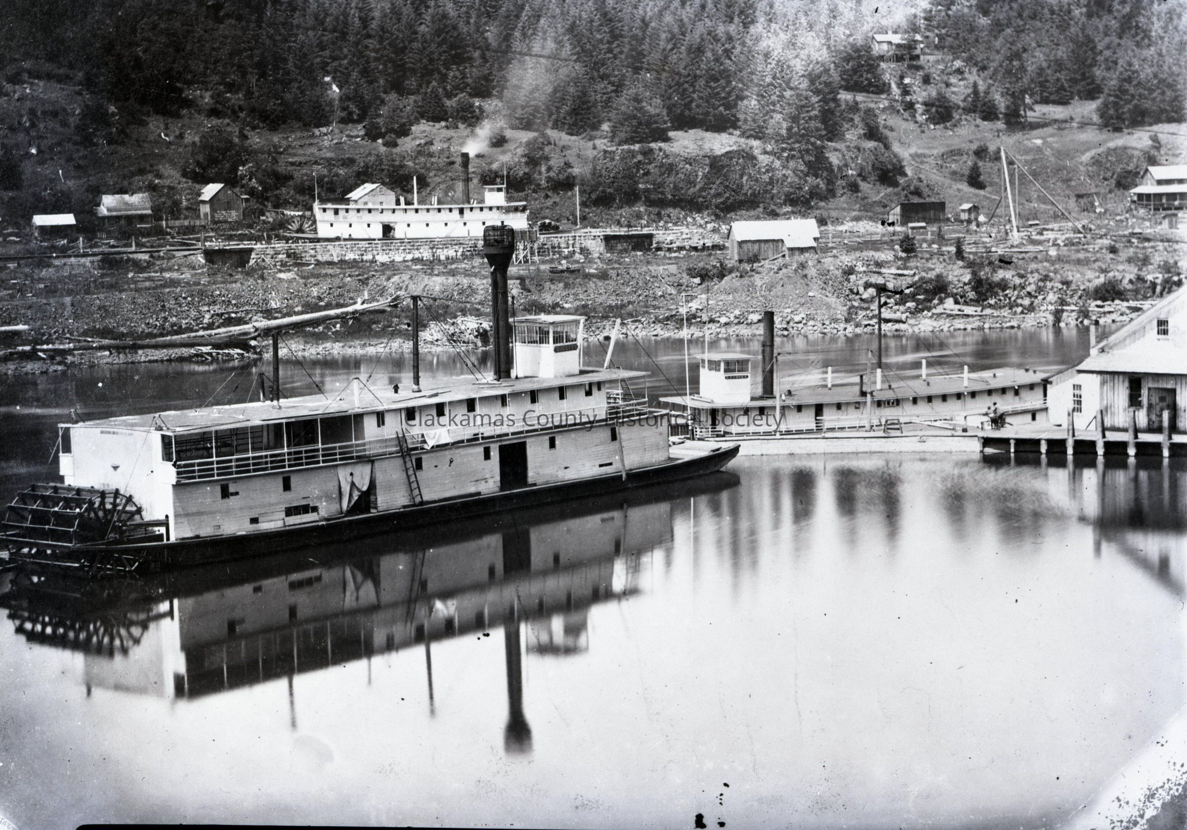 Boats in Oregon City Boat Basin. Steamer "Success" in basin and "E.N. Cook" in Locks..Made/Created
