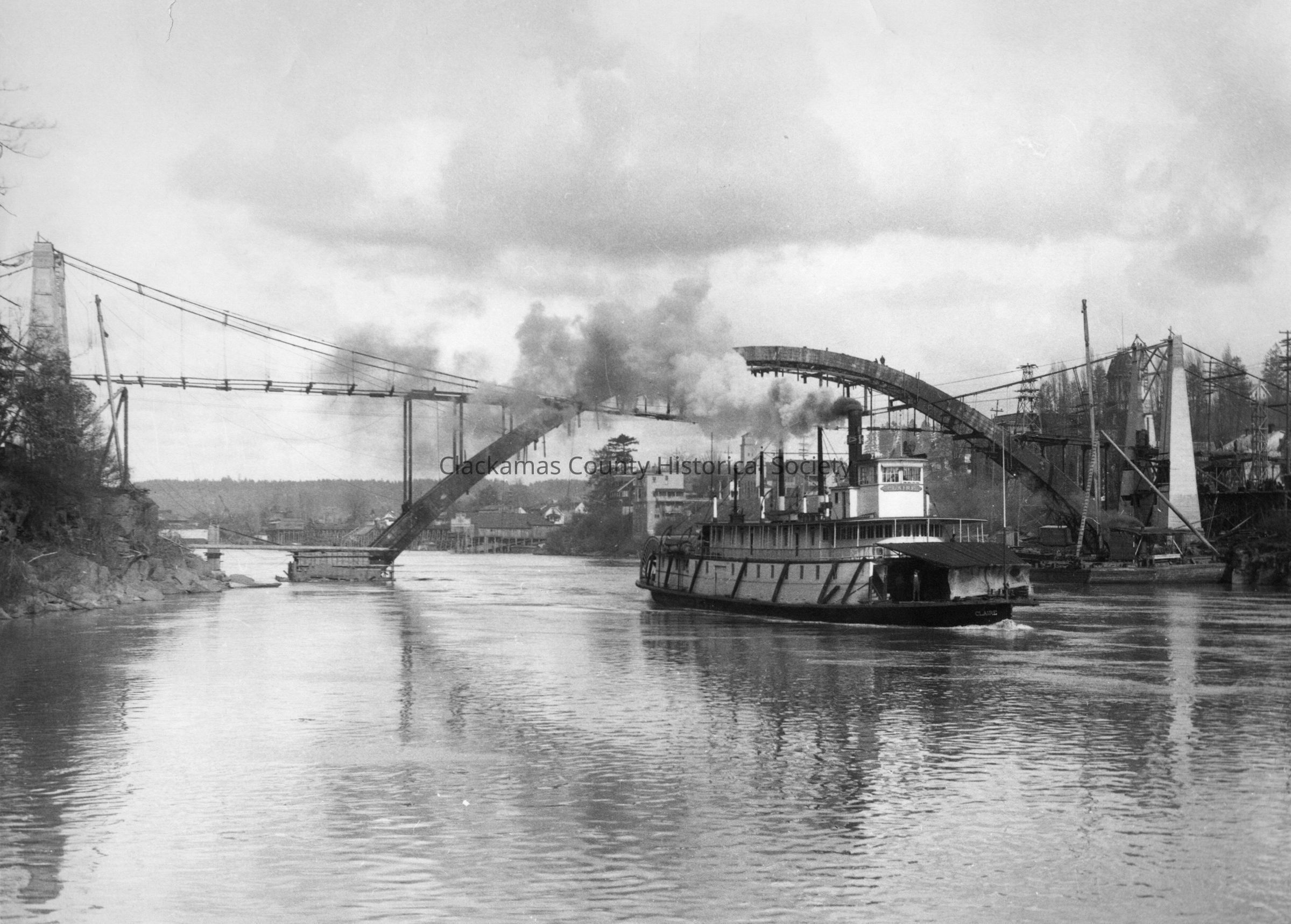 Steamship "Claire" Passing Under Construction of Oregon City Arch Bridge.Entry/Object ID