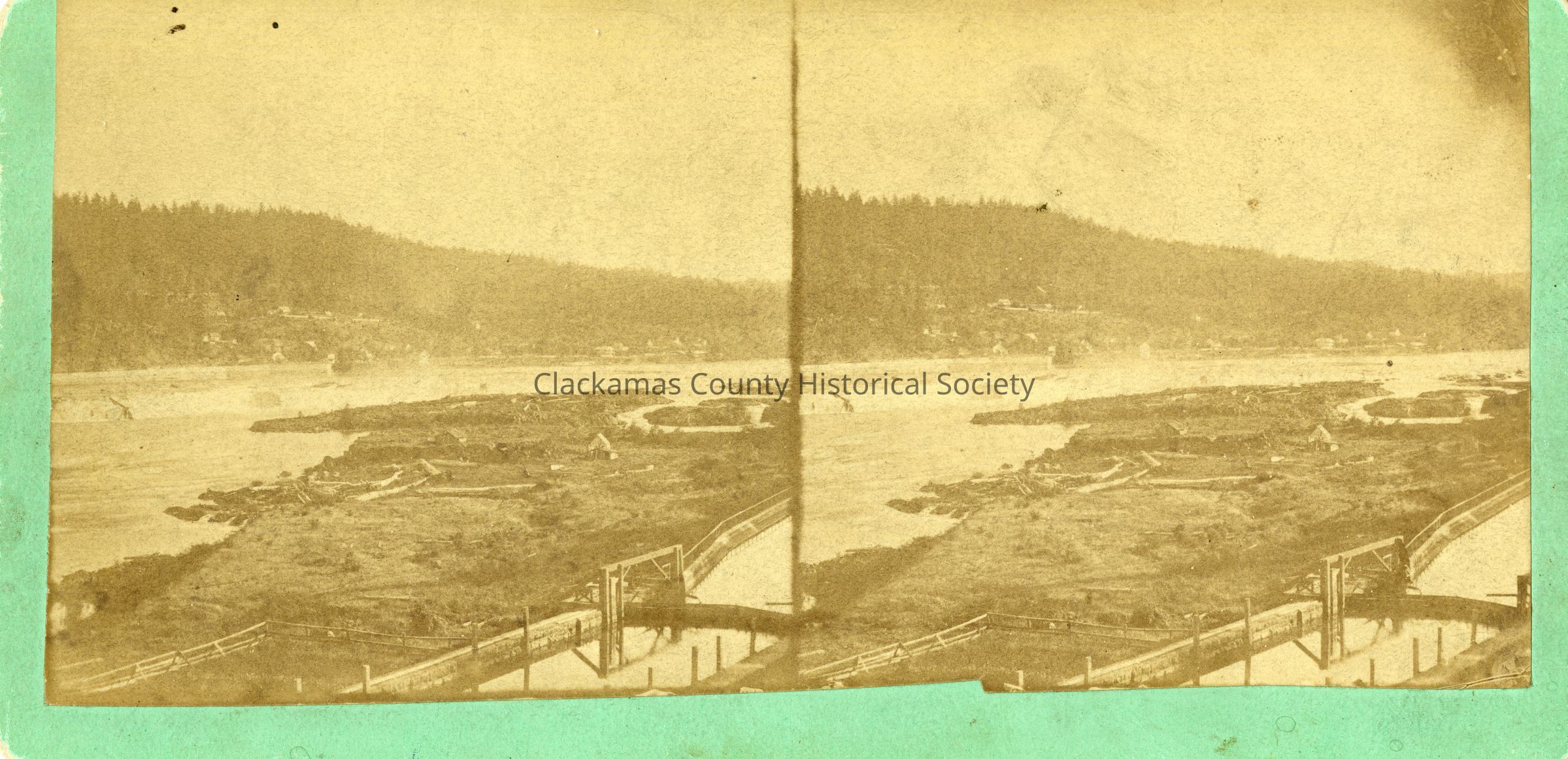 This is a Stereoscopic photograph of the Willamette Falls and Locks.