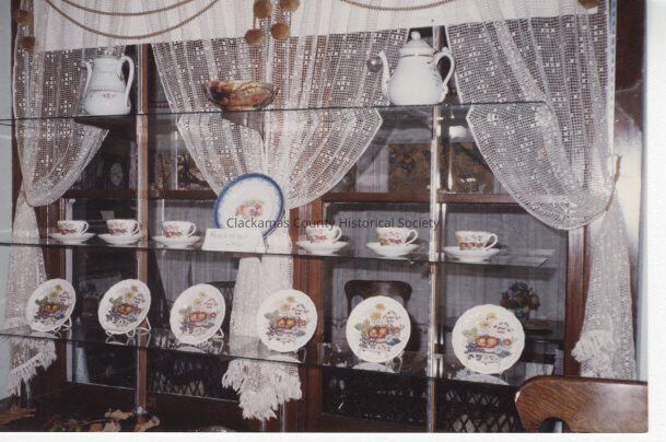 Exhibit at Stevens Crawford house. Sun porch is seen through interior house window.