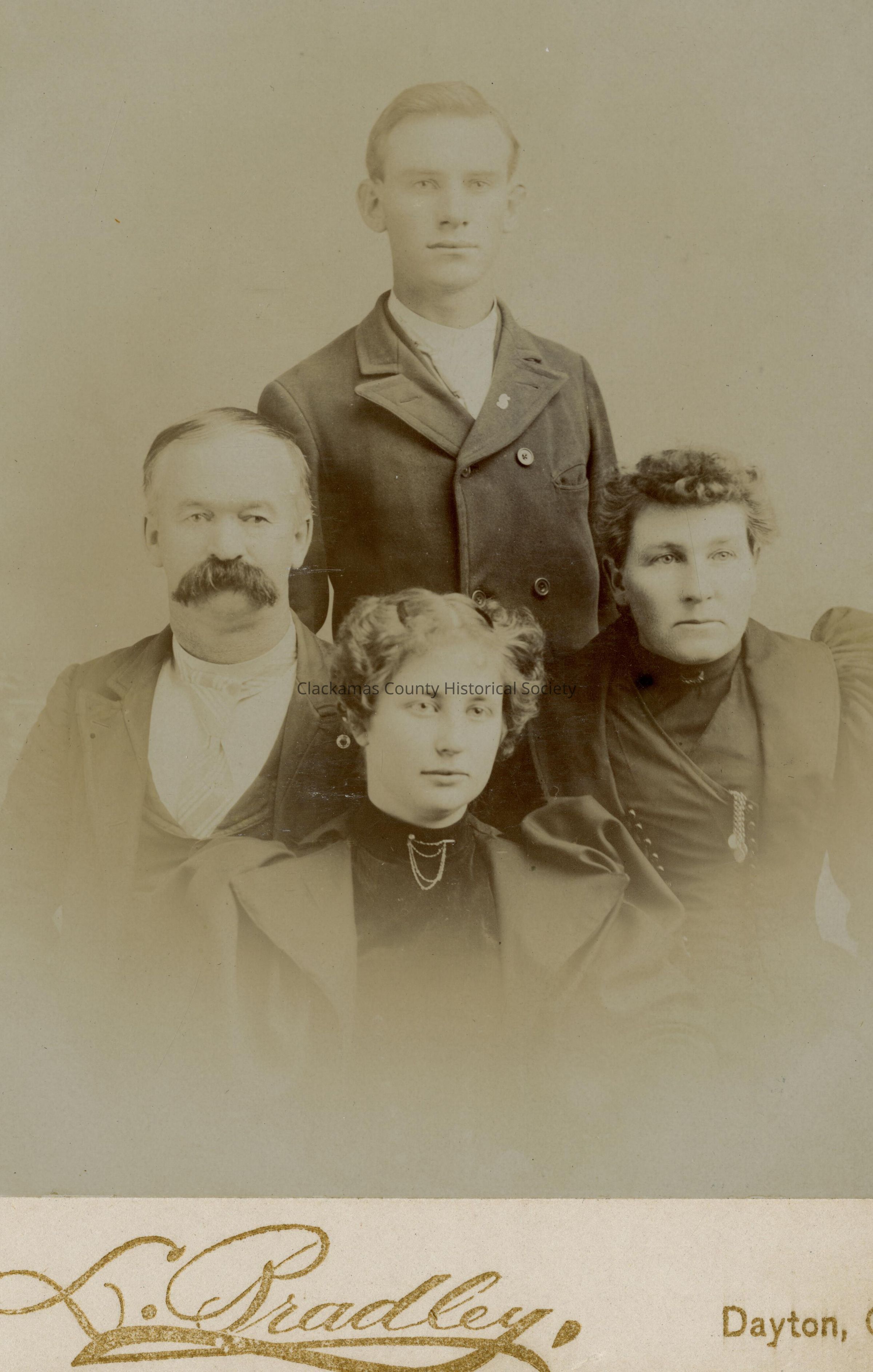 George Stuart (l), Charles Stuart (standing), Ora Stuart (r) and Maude Bishop (front)- as written on back of photographOther Names and Numbers