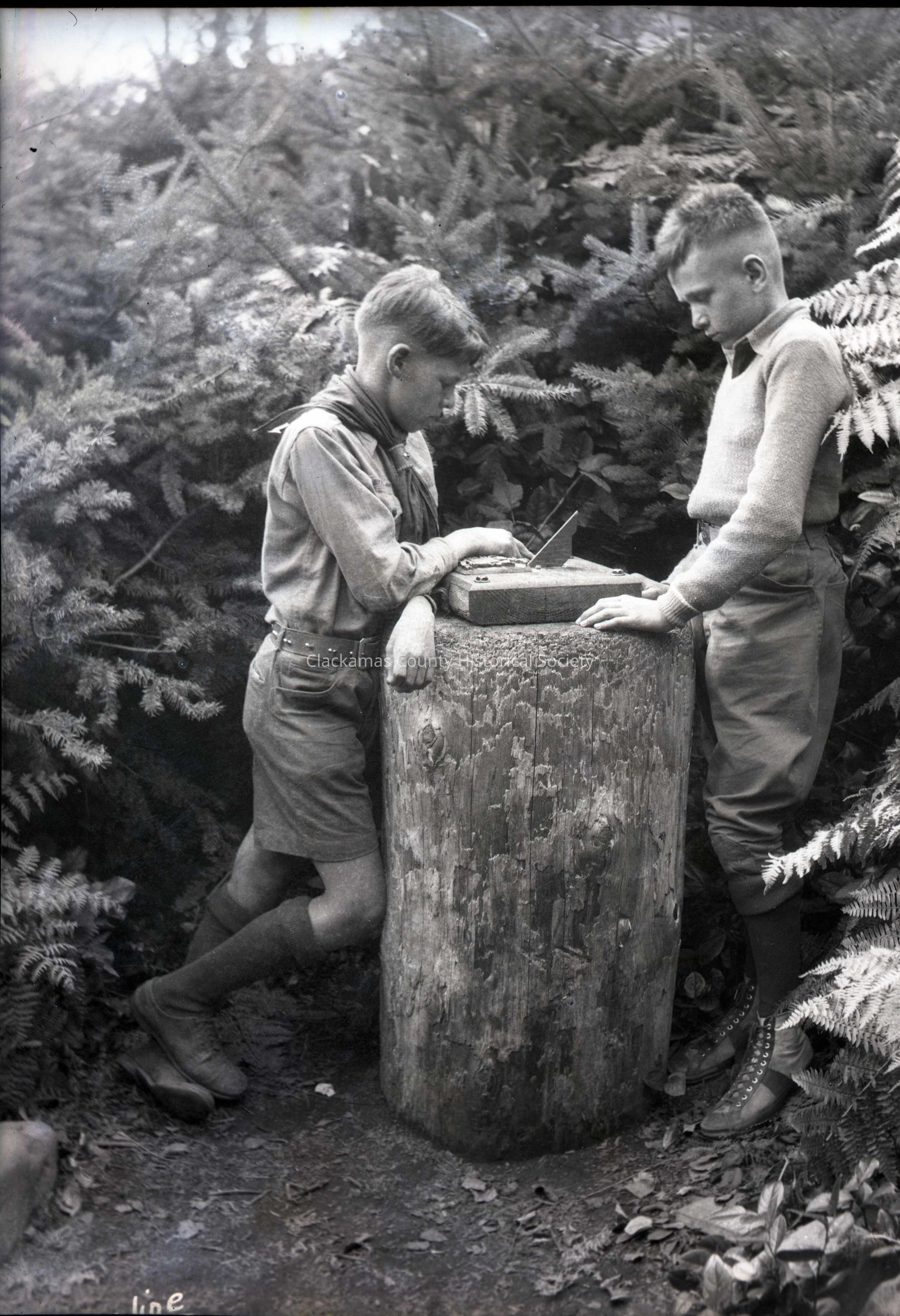Two boy scouts study the Sun Dial Camp Merriwether - Boy Scouts Oliver Leslie