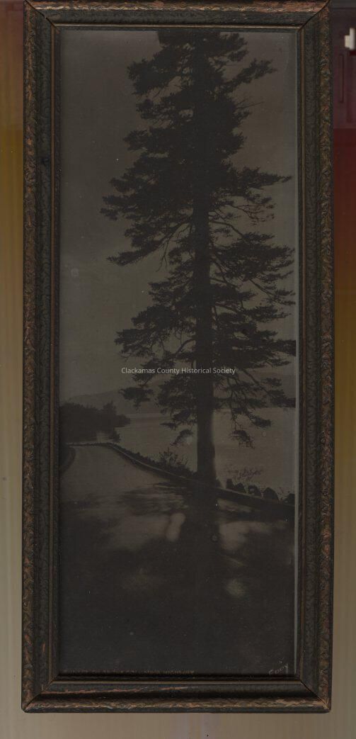 Framed photograph of a fir tree on old Columbia Highway