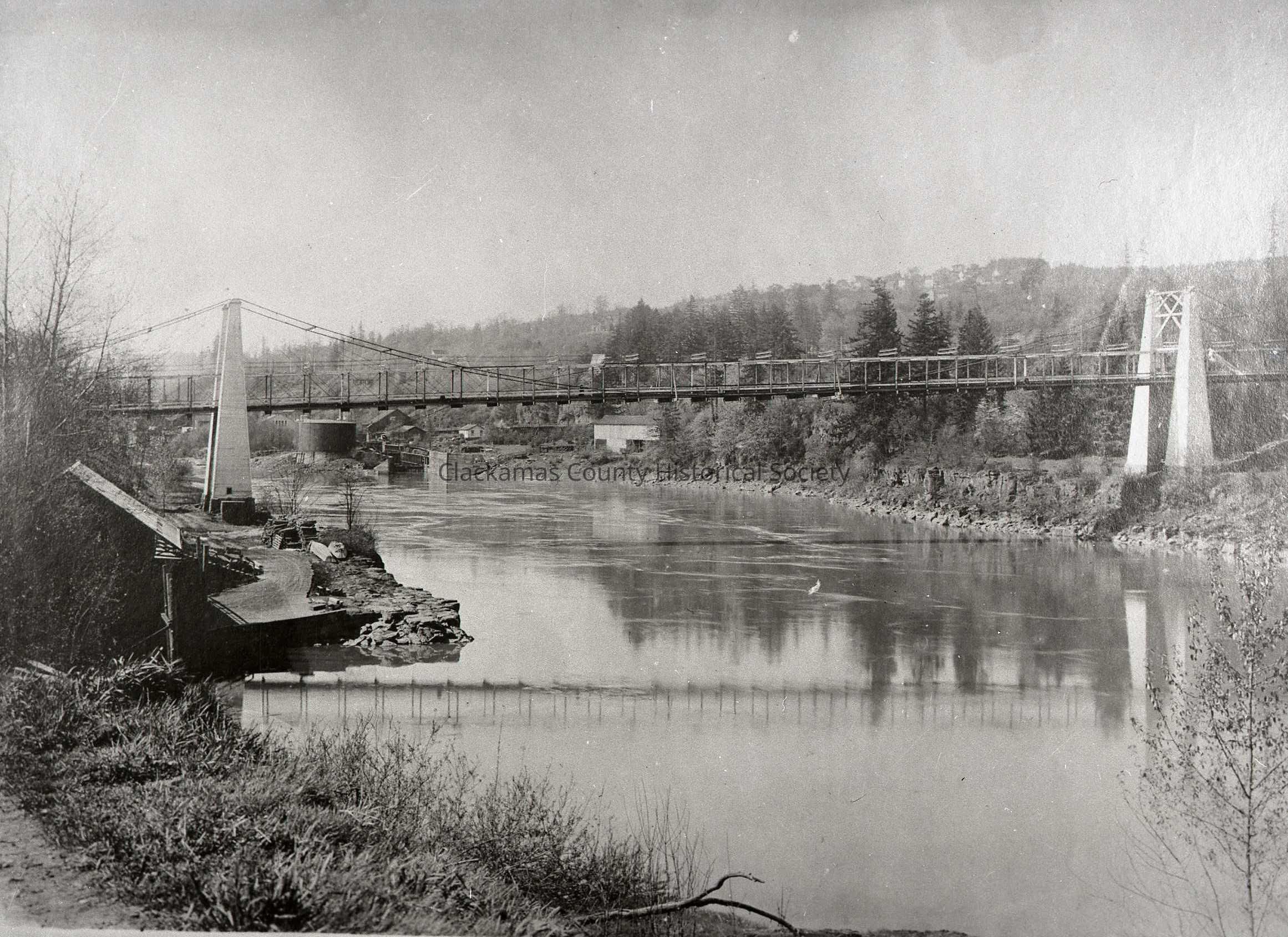 Suspension Bridge, Looking Up the Willamette River.Entry/Object ID