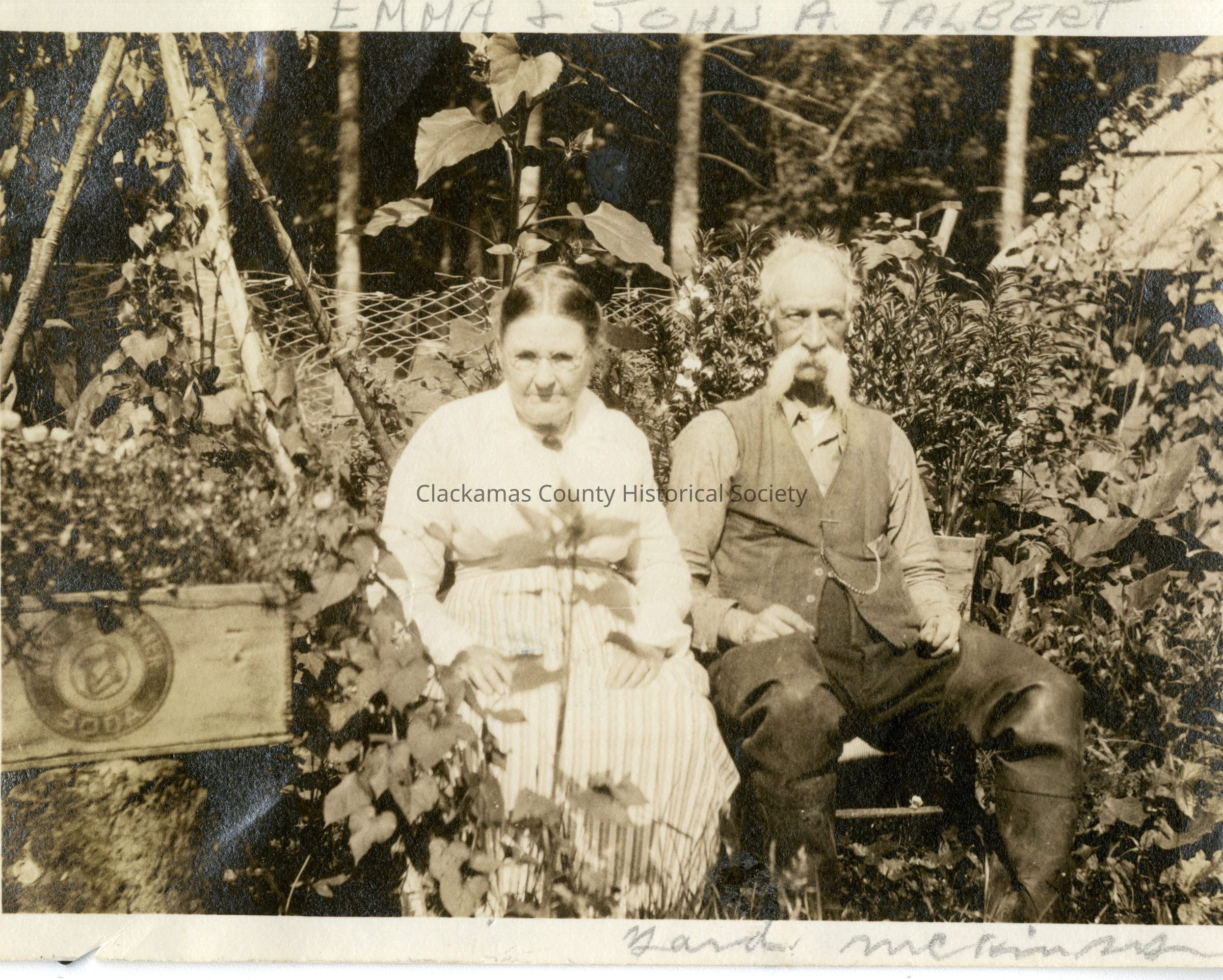Emma (Davis) and John A. Talbert, sitting in their yardInscription/Signature/Marks