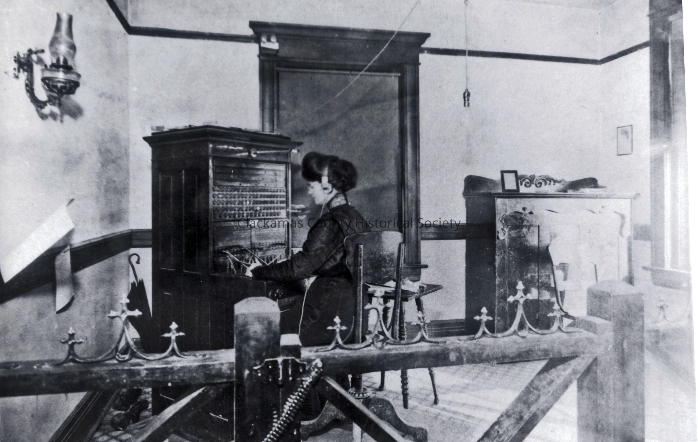 Telephone switchboard. One woman working. Interior. No identification of location, possibly Portland or Oregon City.Made/Created