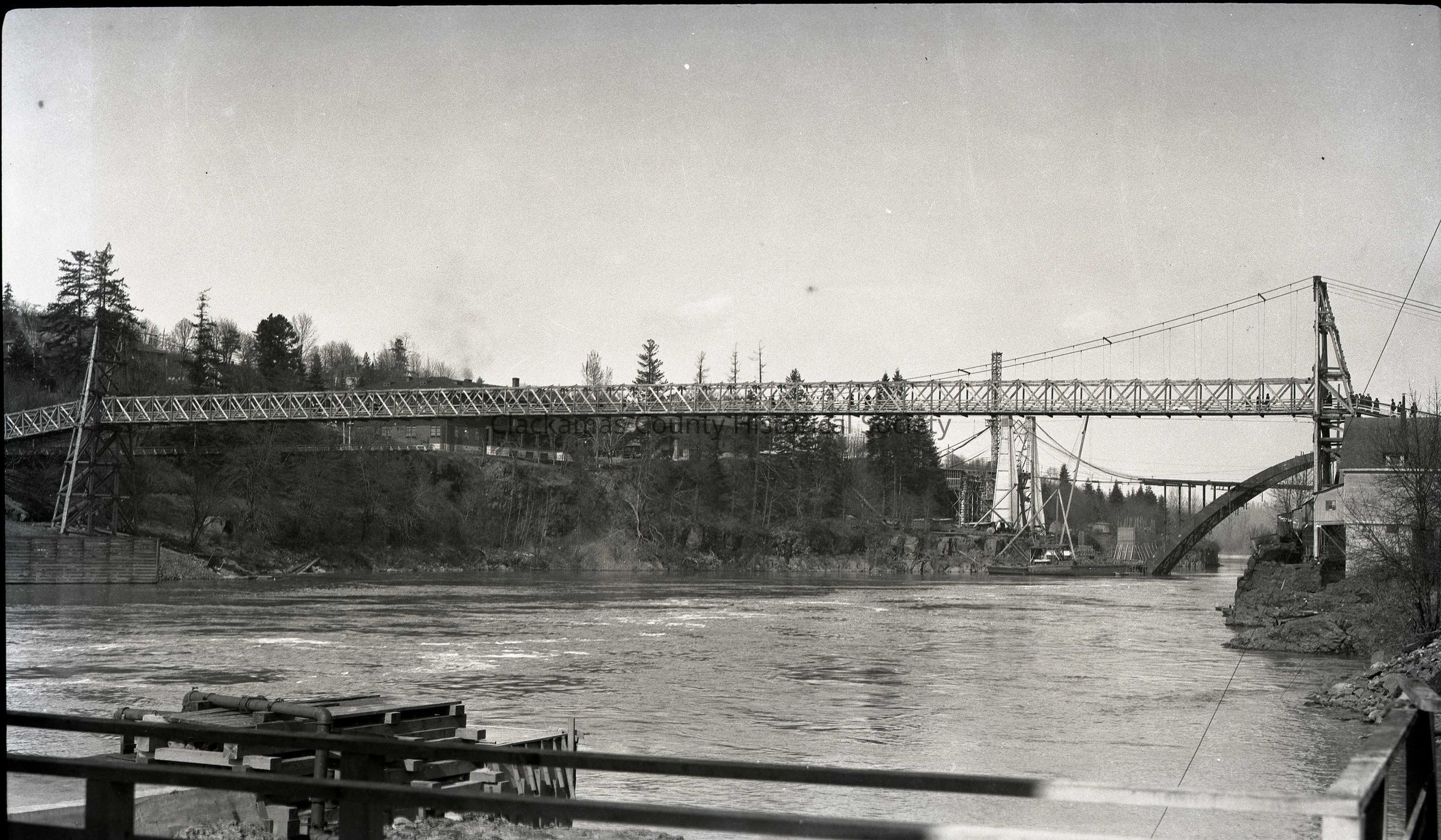 Temporary Suspension Bridge and the Arch Bridge during Construction, 1922Entry/Object ID