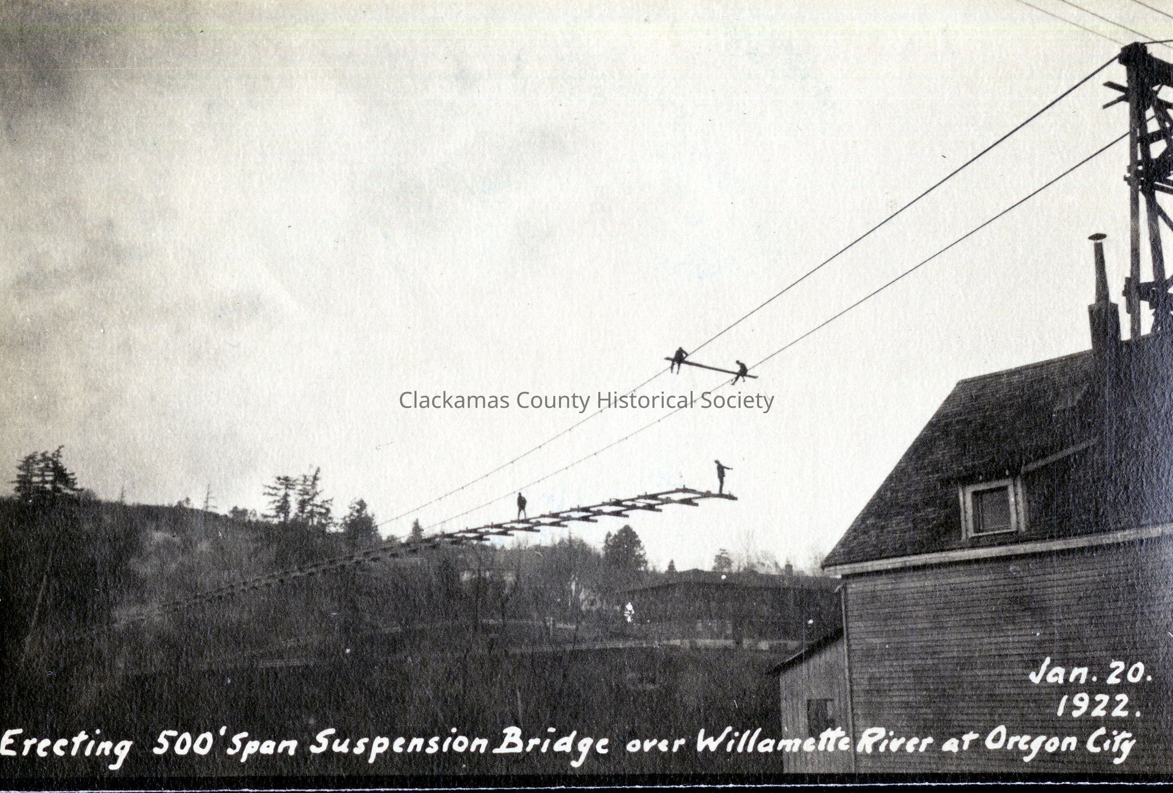 Temporary Suspension Bridge Construction 1922 - Oregon City, OregonEntry/Object ID