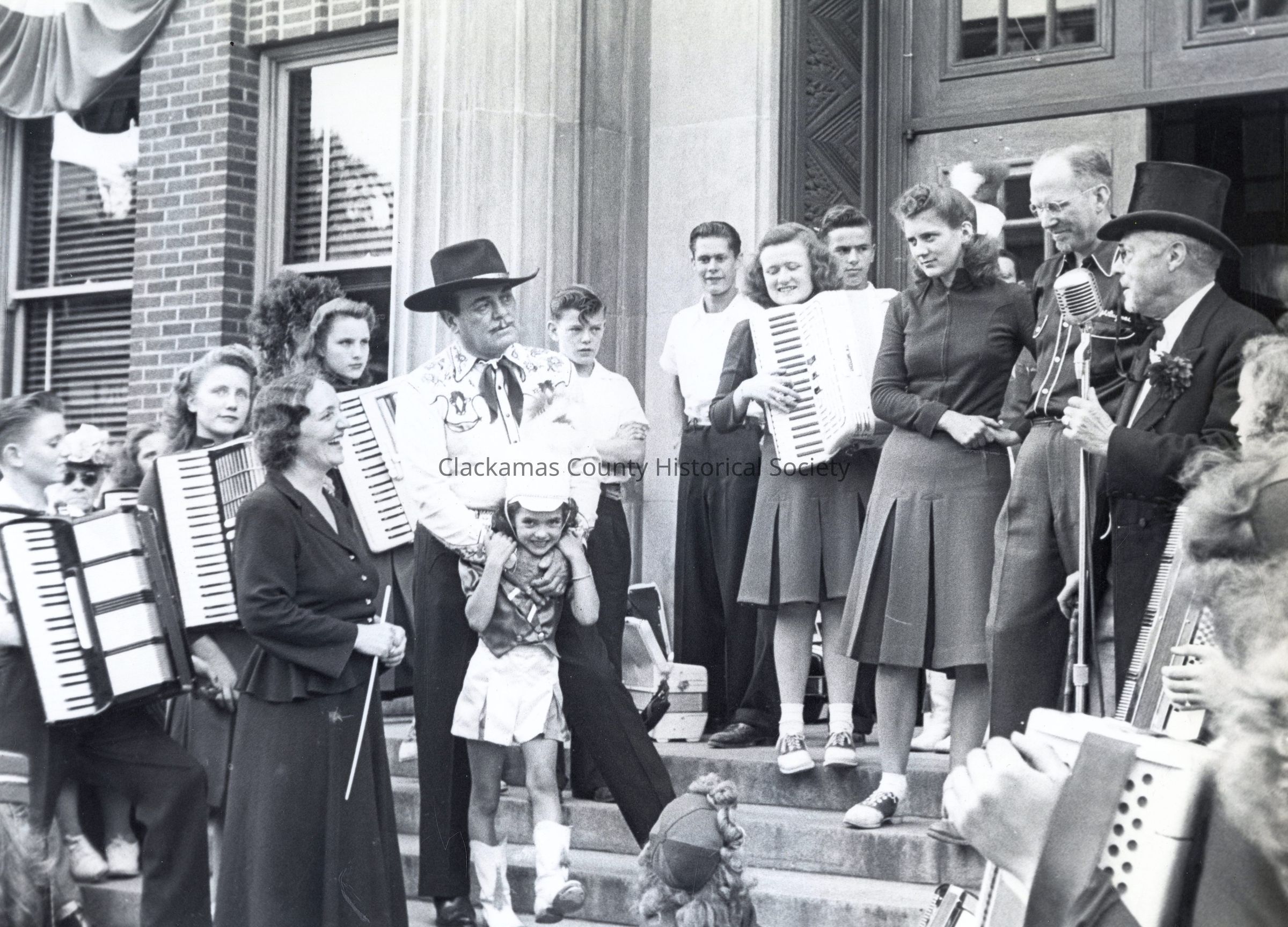 Territorial Days. Steps of courthouse with TV/Movie Actor, Leo Carrillo, (Pancho of Cisco Kid fame).