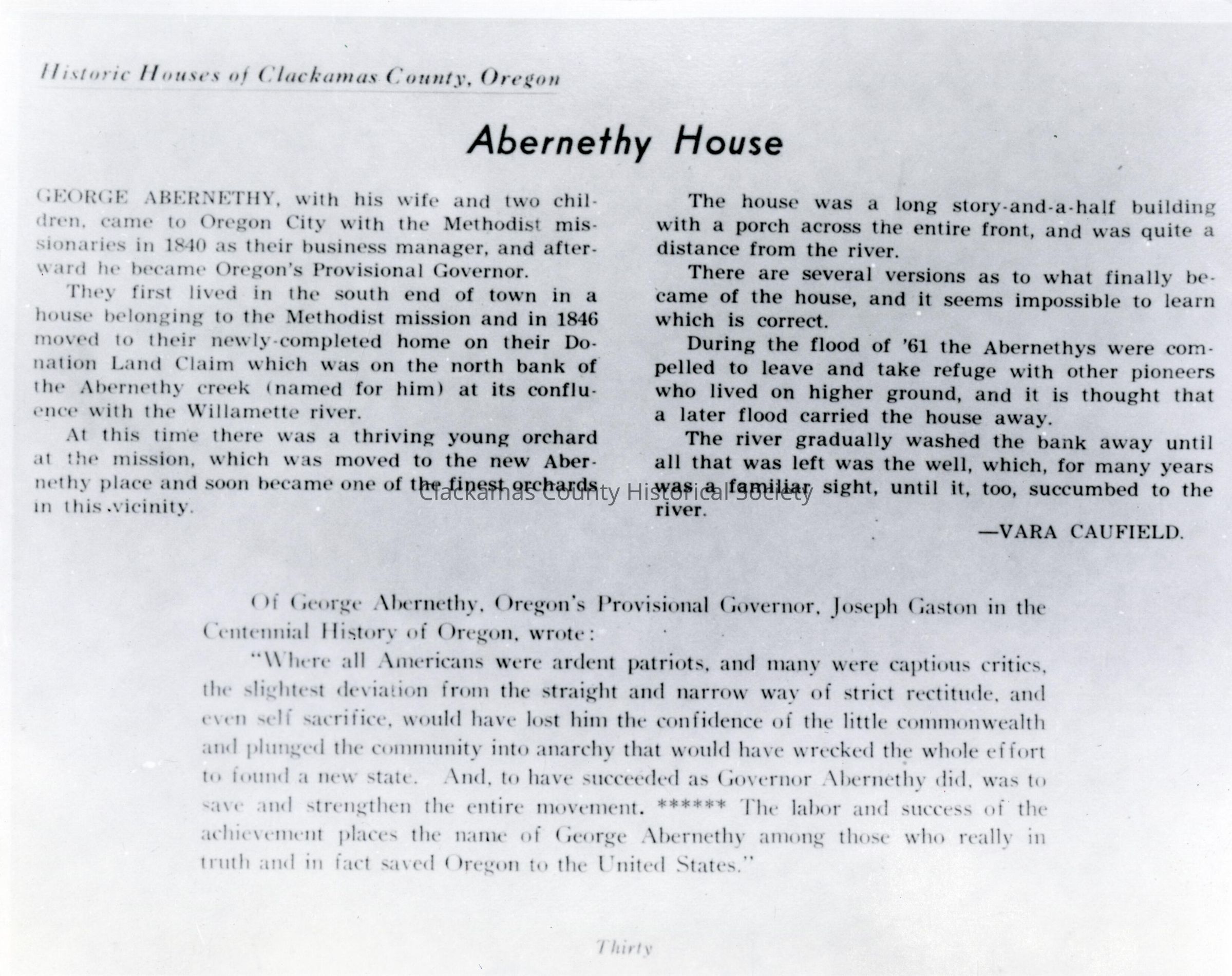The History of the George Abernethy House from Historic Houses of Clackamas County, Oregon, Also see P-4118Made/Created