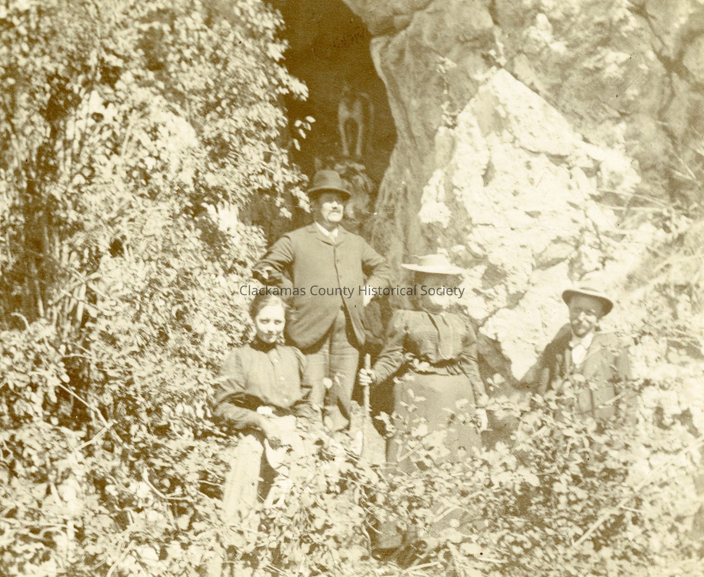(l) Mr. and Mrs. Mitchel, Alice, Mr. White (r) and there appears to be a dog in the shadows of cave opening.Other Names and Numbers