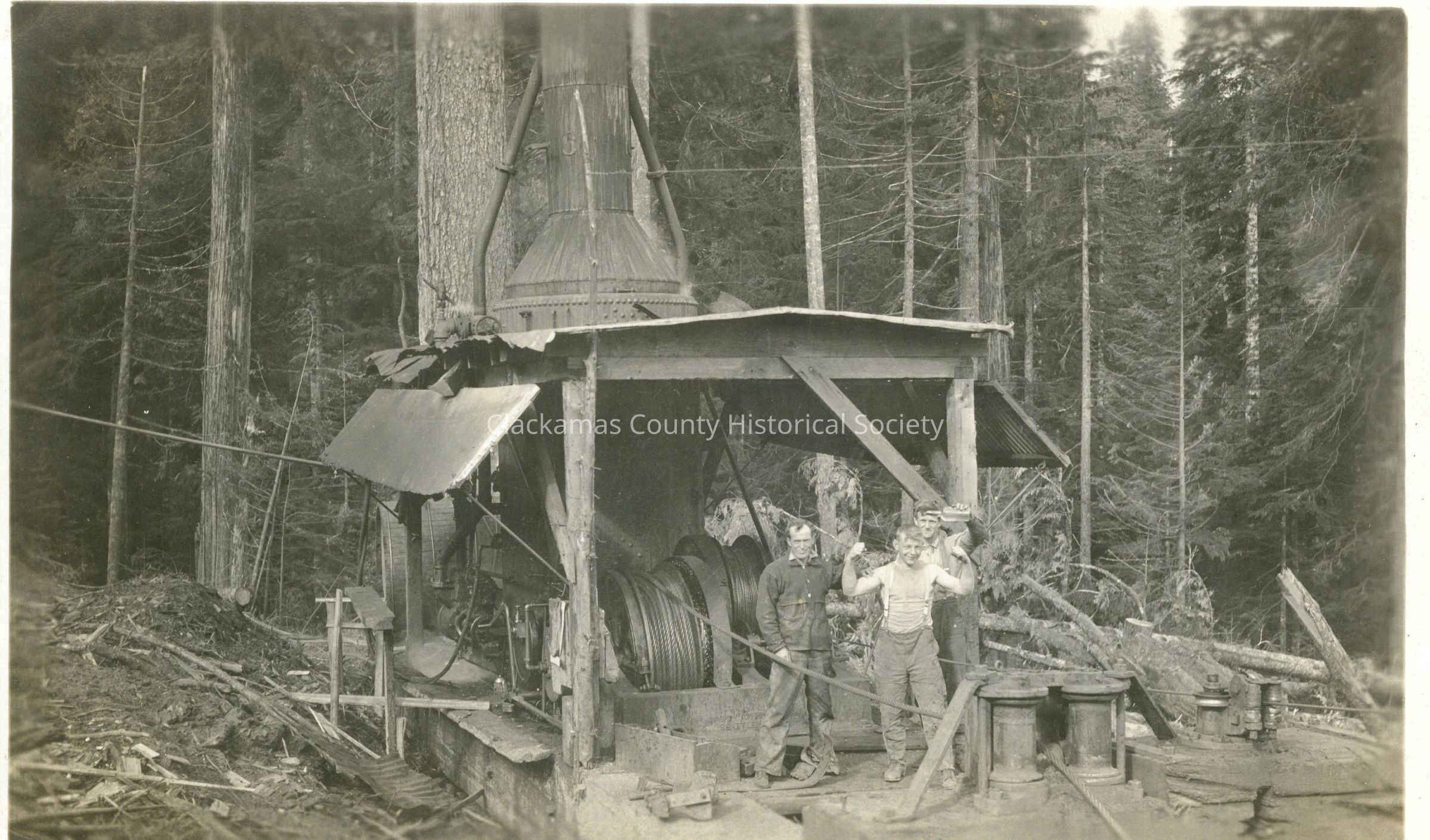 Three Men with Steam Donkey used for Moving LogsEntry/Object ID