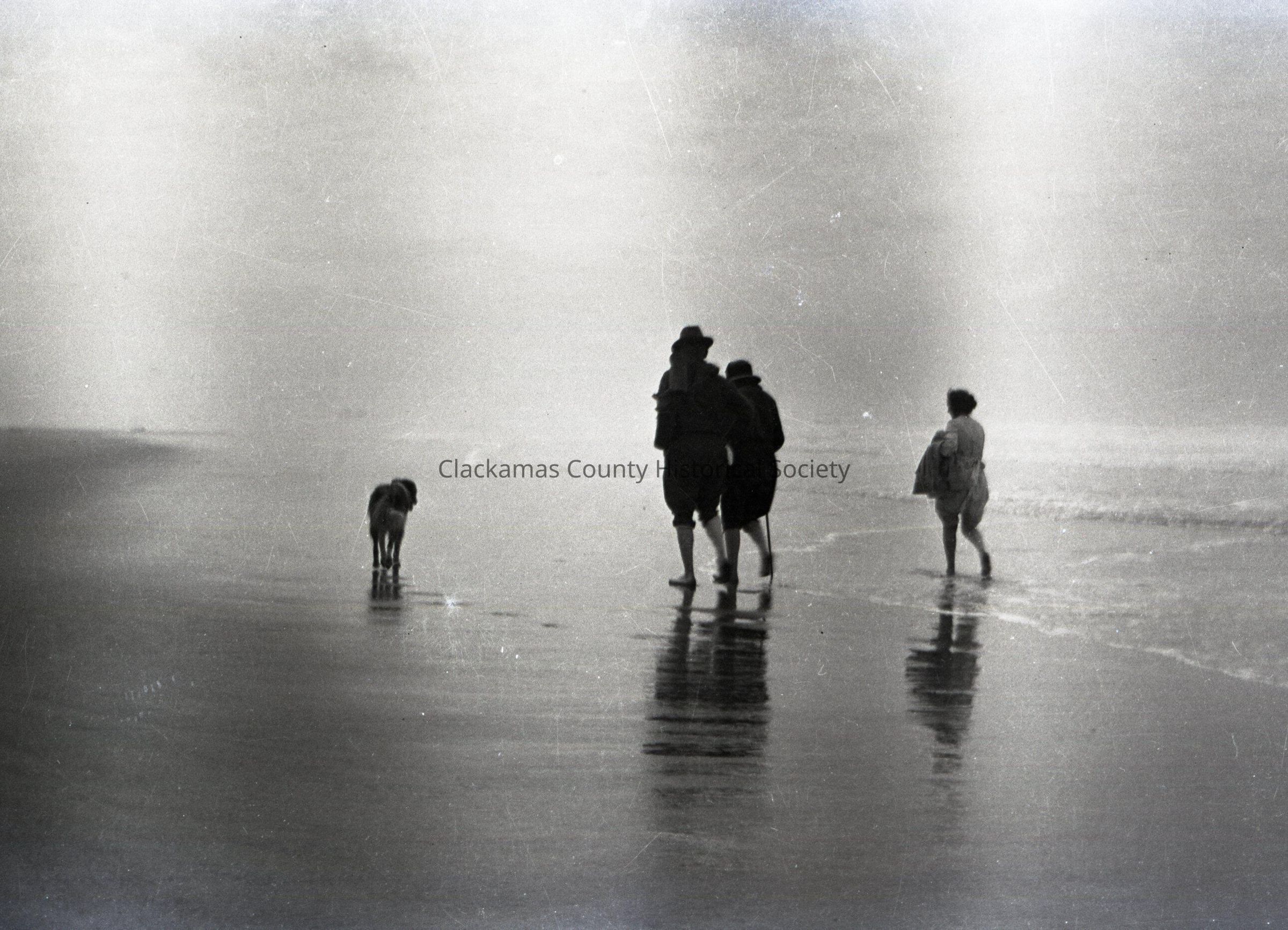 Three People and Dog Walking in Beach Surf. (envelope unmarked)Made/Created
