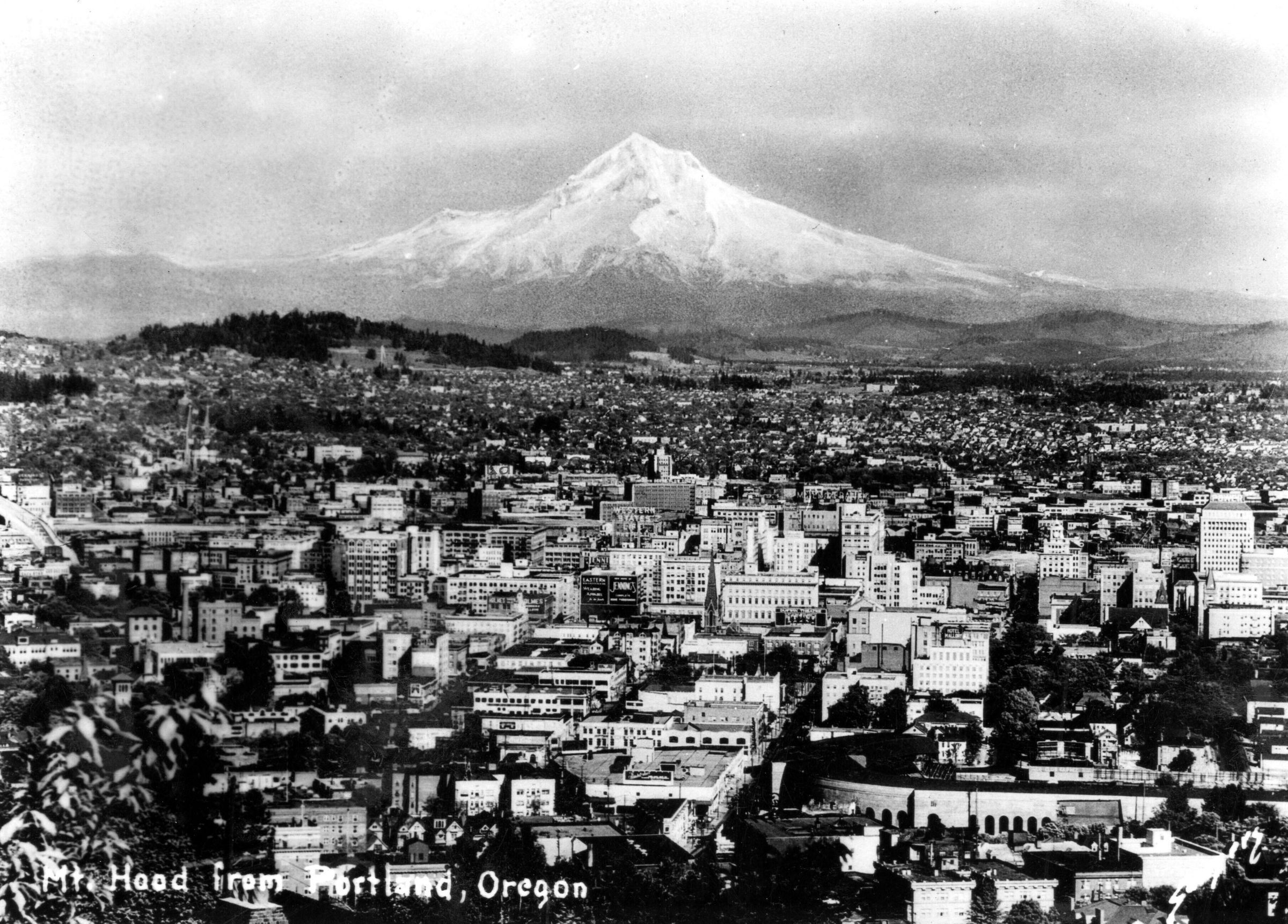 Timberline Lodge and Mt. Hood, 1943. 8 photos. 1 taken from Portland.Made/Created