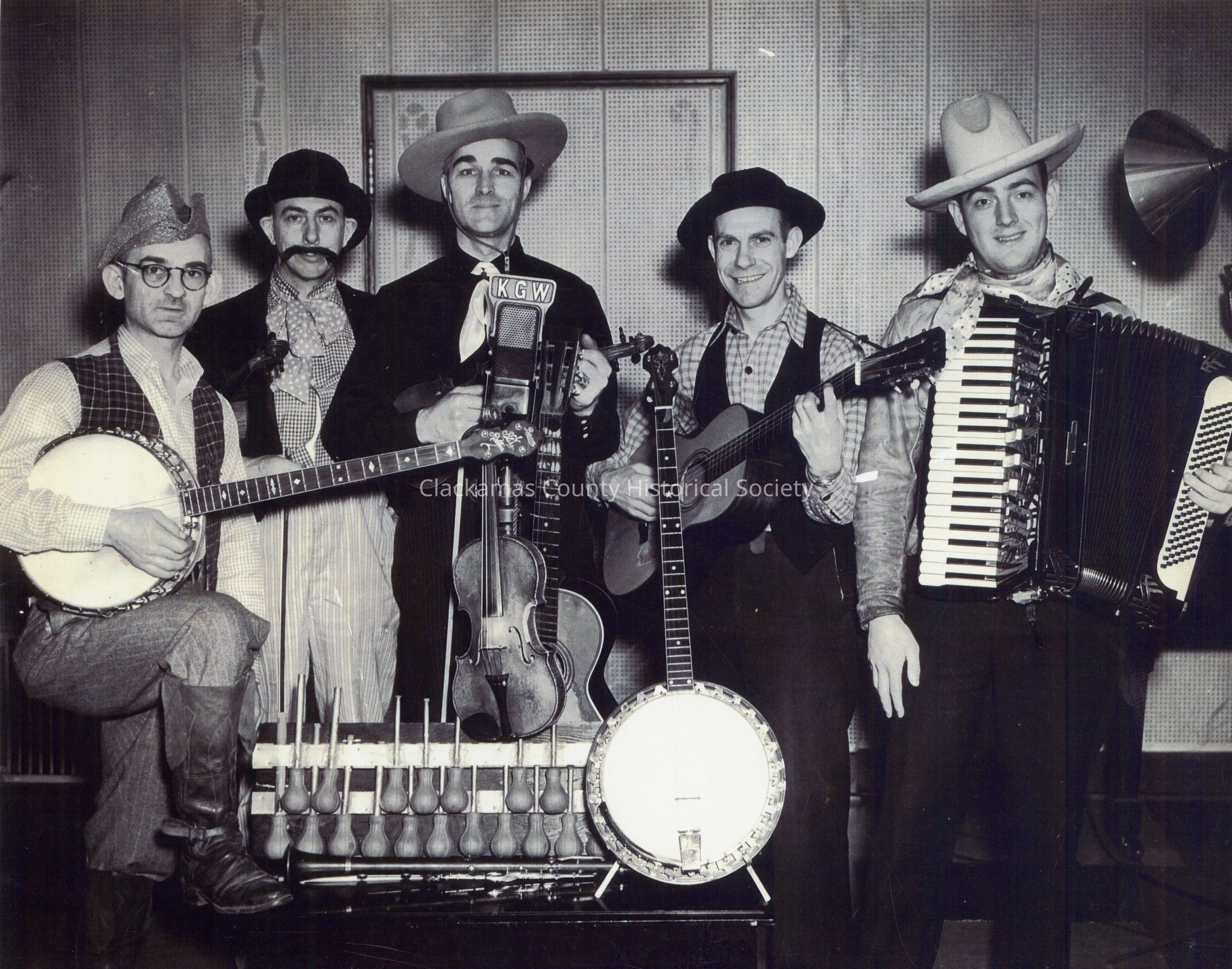 Photo of a group known as the Trailblazers on KGW radio. Musicians are from left, Jack Nash, C.N. Tolman, Jake Smith, and Marcellus Martin.
