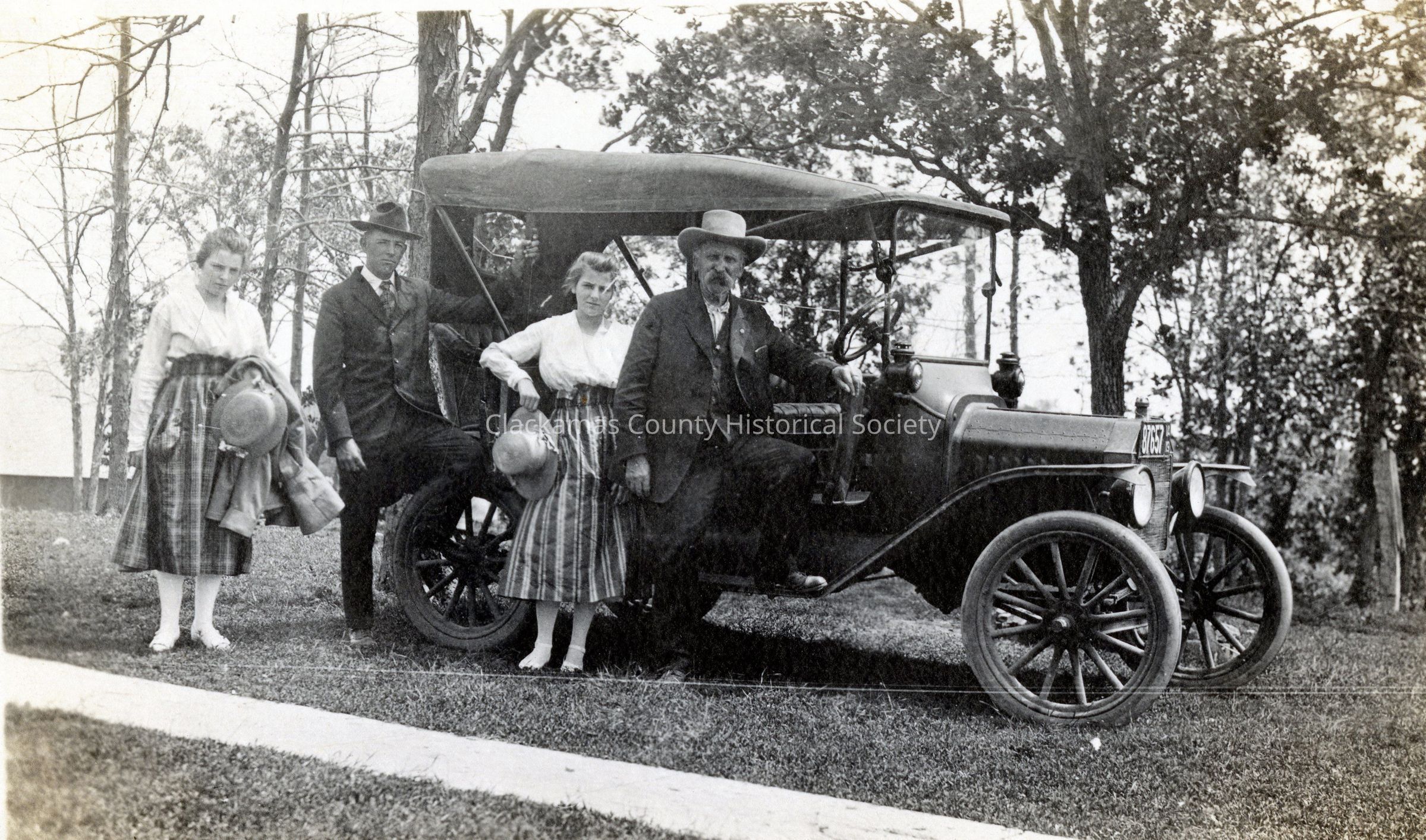 Two Couples Standing Next to a Model A Roadster - Identified Rachel, Unknown, Elmer & Ruth