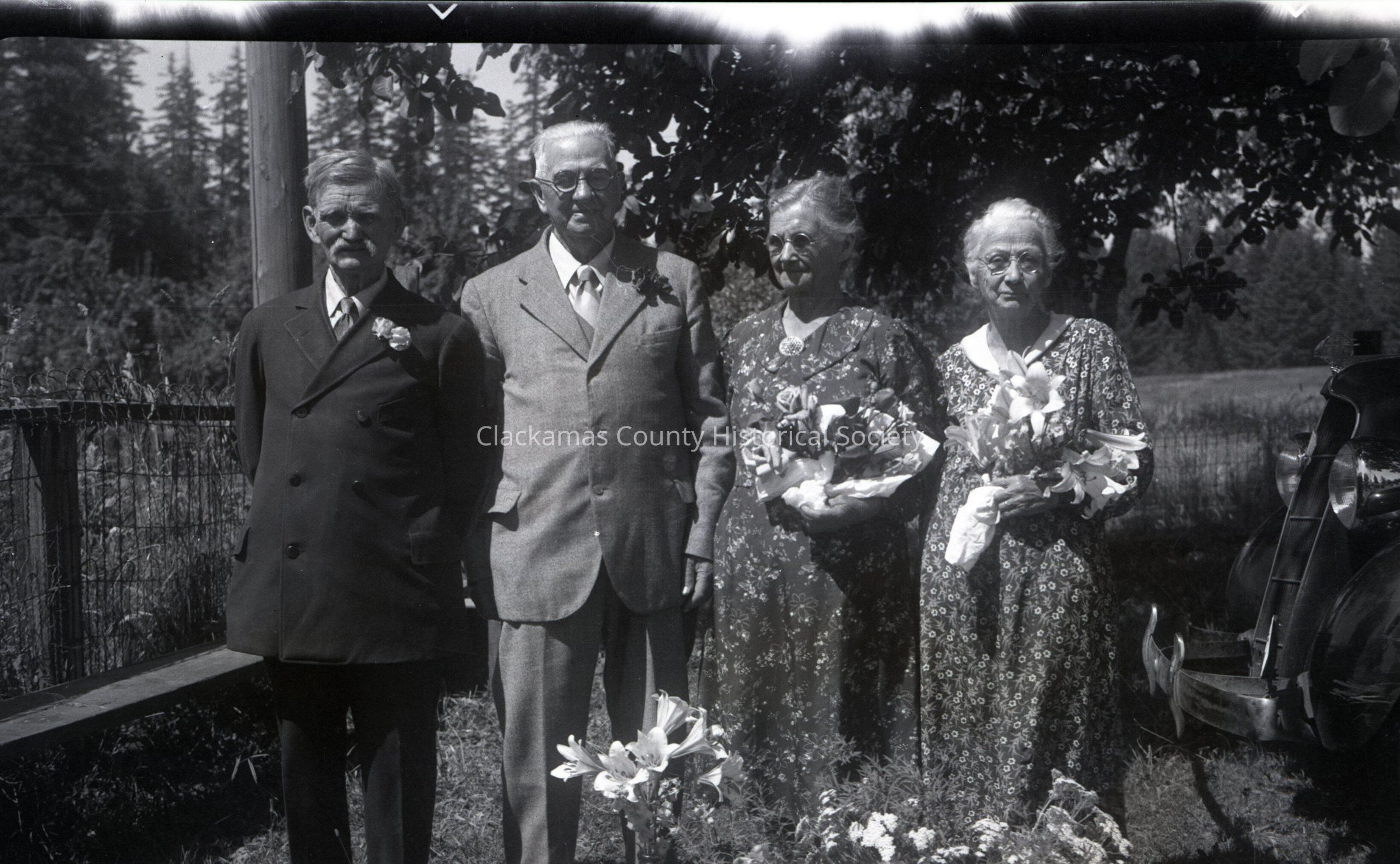Two Women and Two Men Holding Flowers. (envelope unmarked)Made/Created