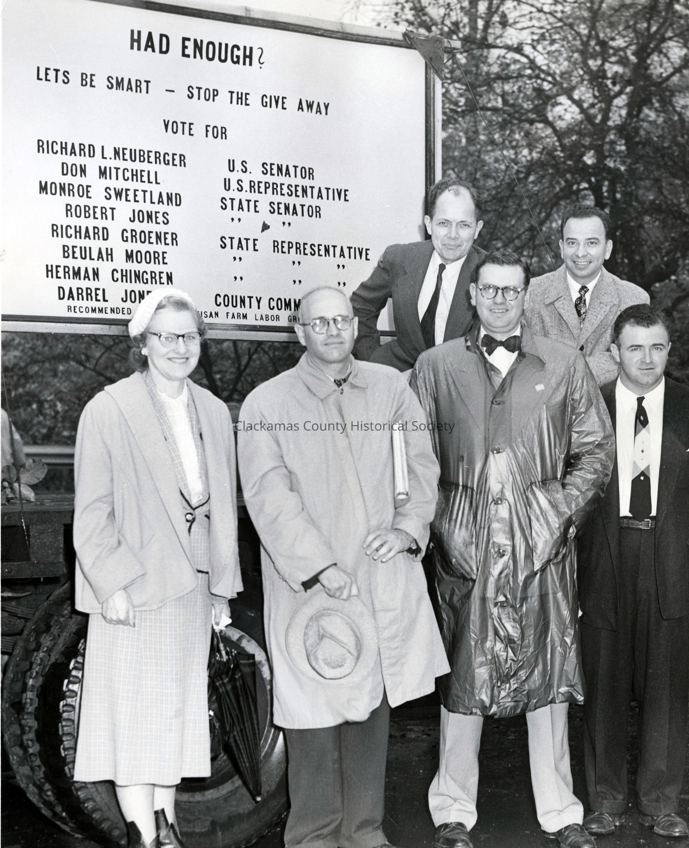 U.S. Senator Maurine Newberger and Politicians with Politcal Sign. No names given. 1960s.Made/Created