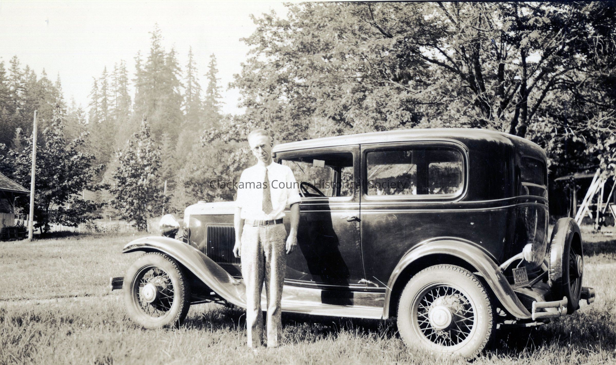 Unidentified Man Standing next to a Model A Sedan Automobile