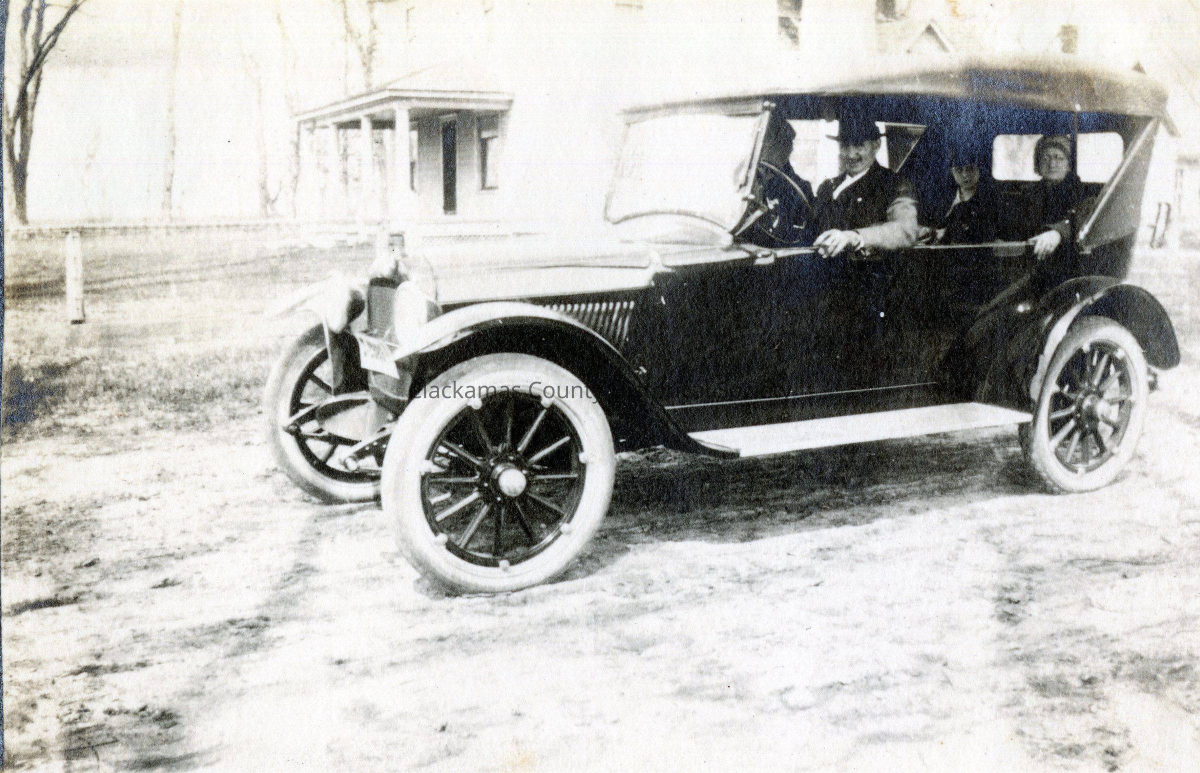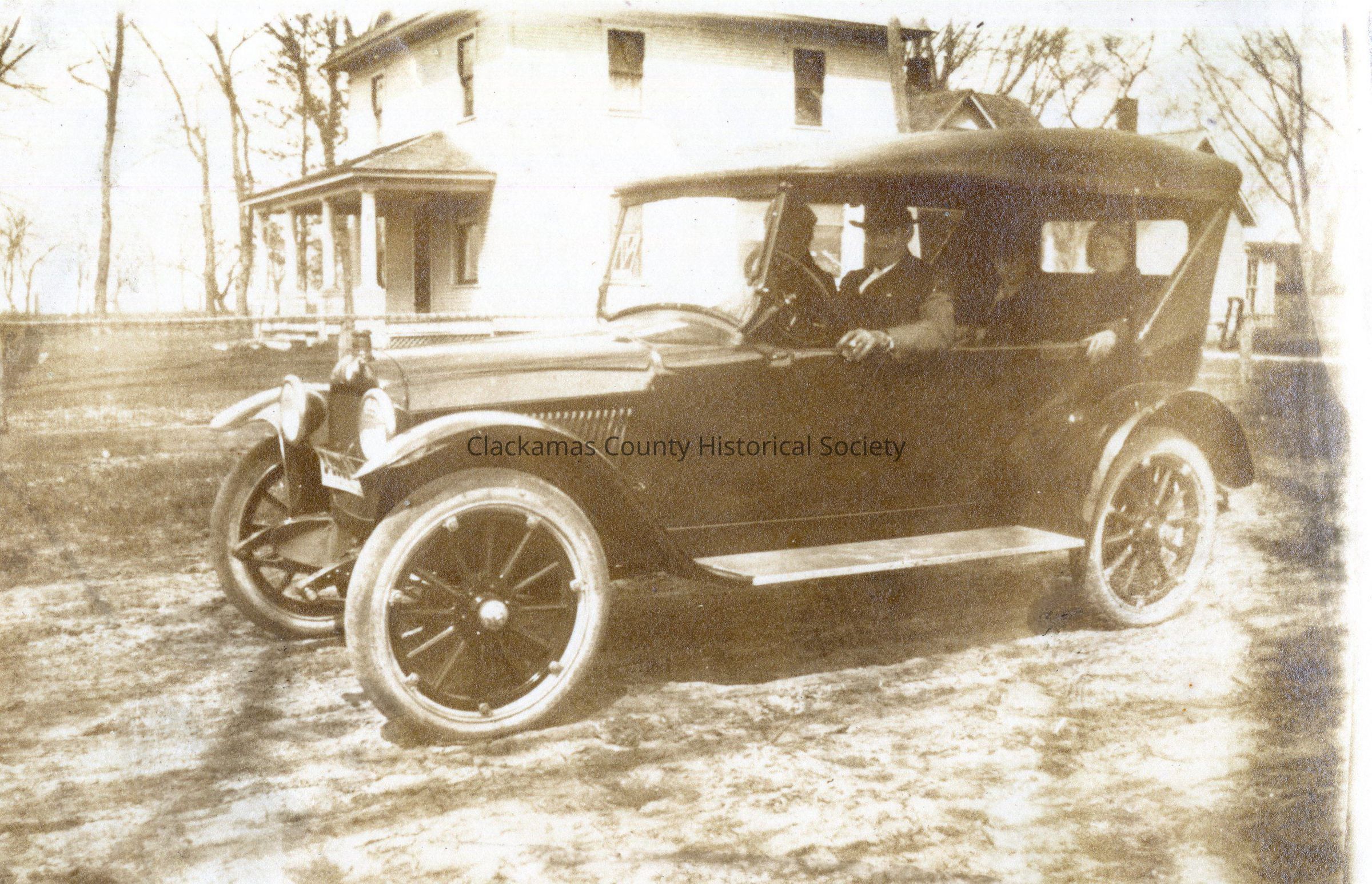 Unidentified Men in a Model A Roadster - Four Square House in Background