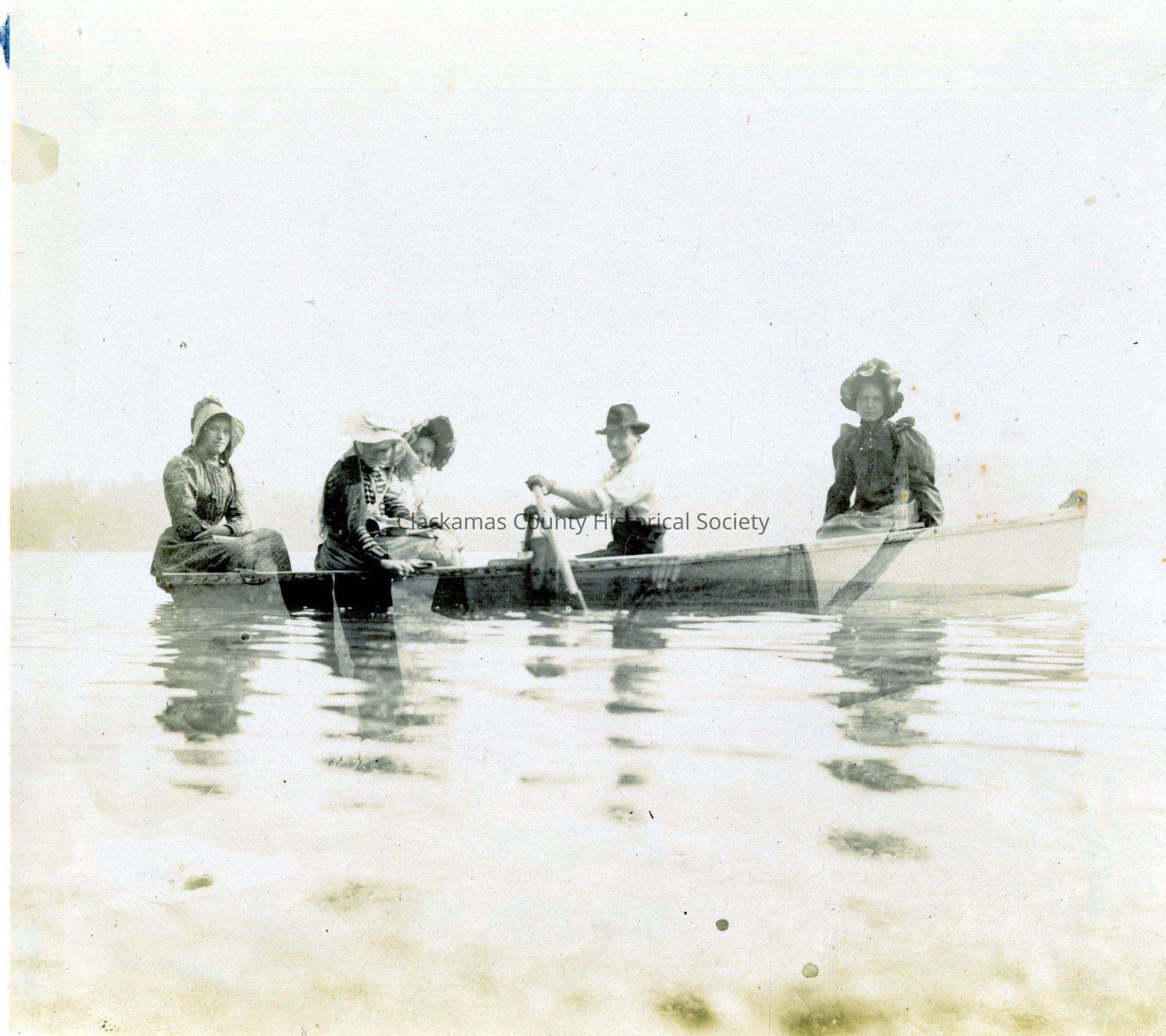 Five (5) Unidentified People in a row boat on a body of waterOther Names and Numbers