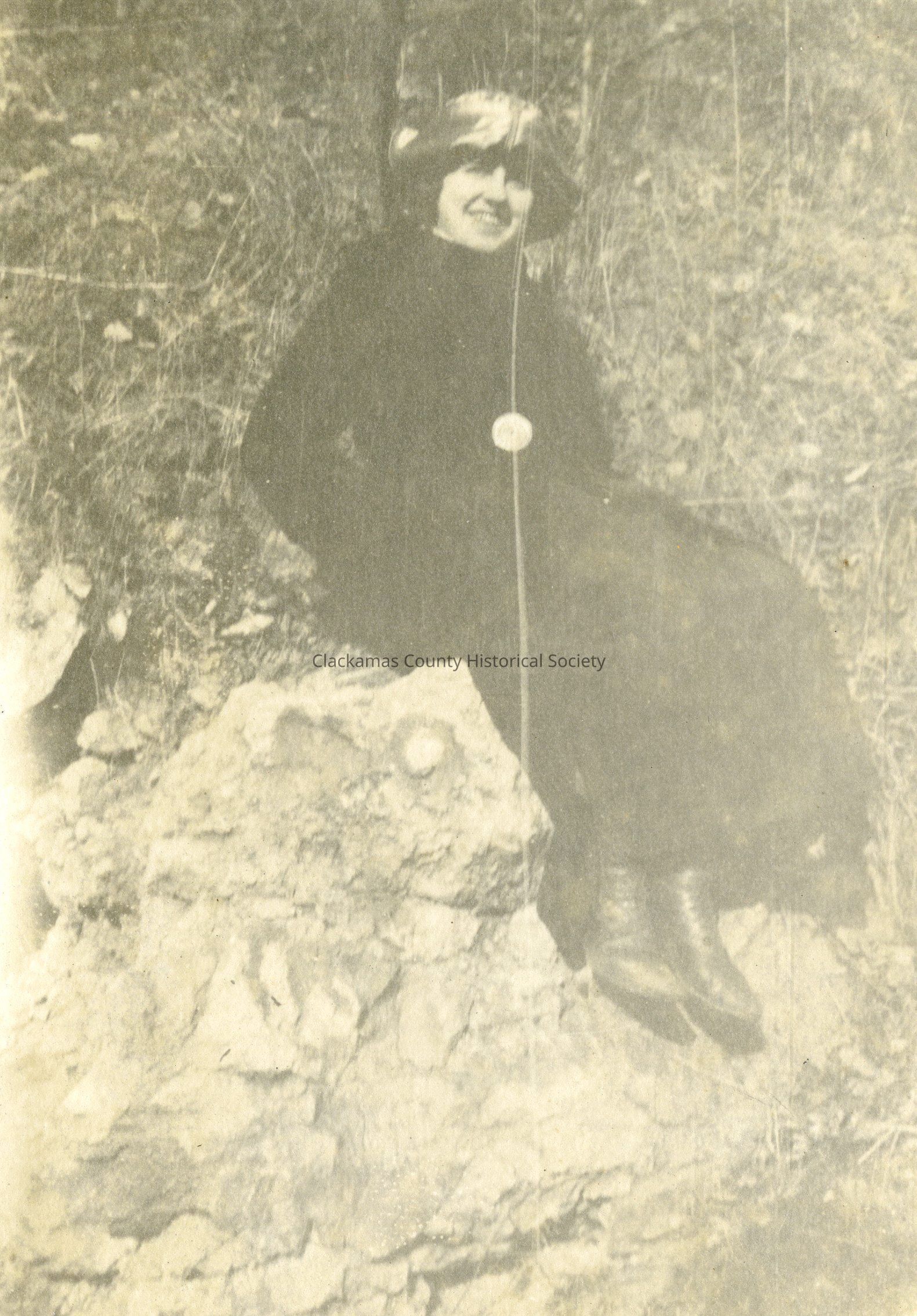 Unidentified woman sitting on rock