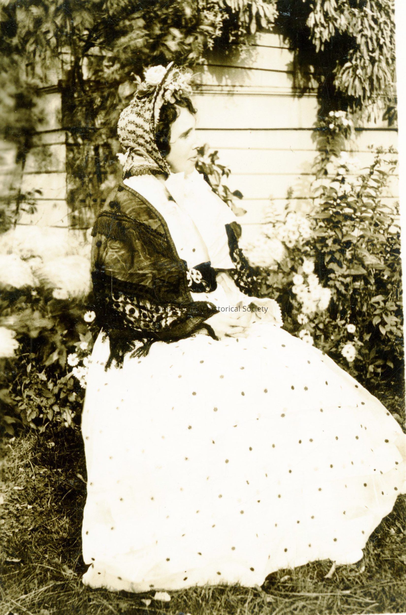 Unidentified woman sitting in a garden