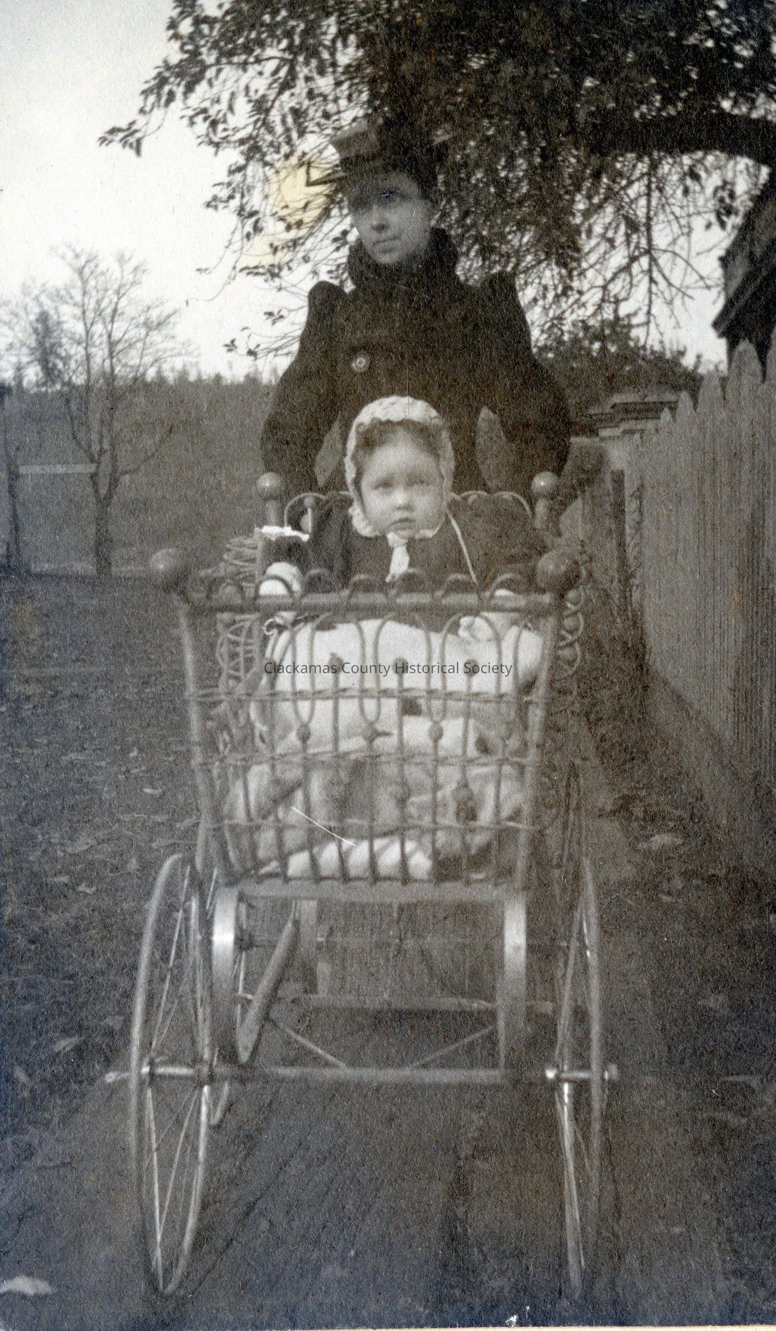 Unknow Woman Pushing a Baby in a Baby Buggy P-1050-001954