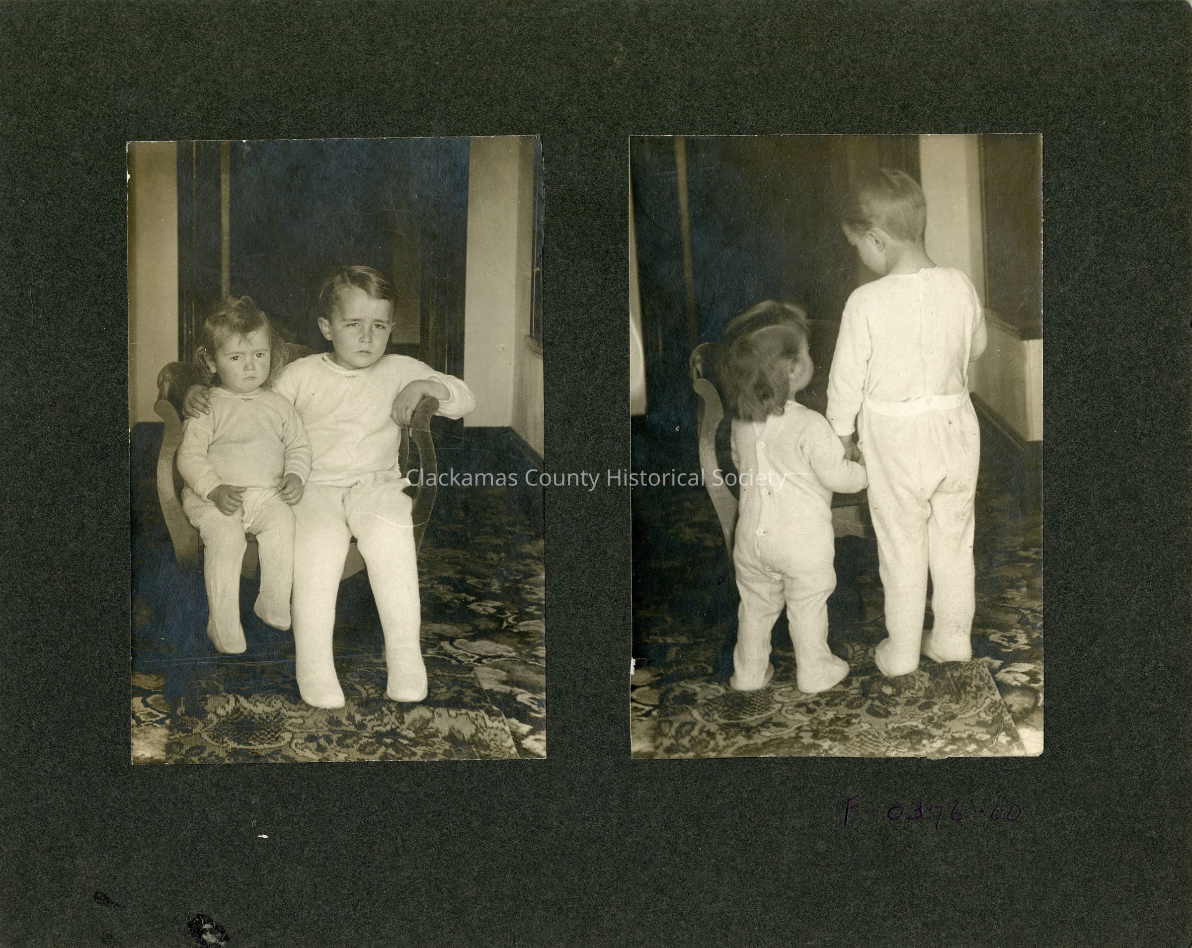 Unknown Boy and Girl in Pajamas (Front and Back Photos)